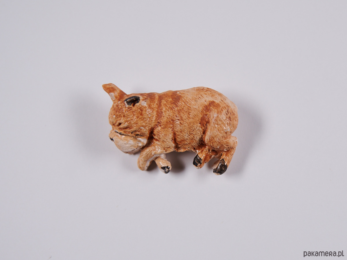 Urocza przypinka w kształcie pieska, ręcznie wykonana z ceramiki. Każdy egzemplarz powstaje indywidualnie, dlatego nie ma dwóch identycznych przypinek – różnią się drobnymi detalami, odcieniem szkliwa i fakturą.