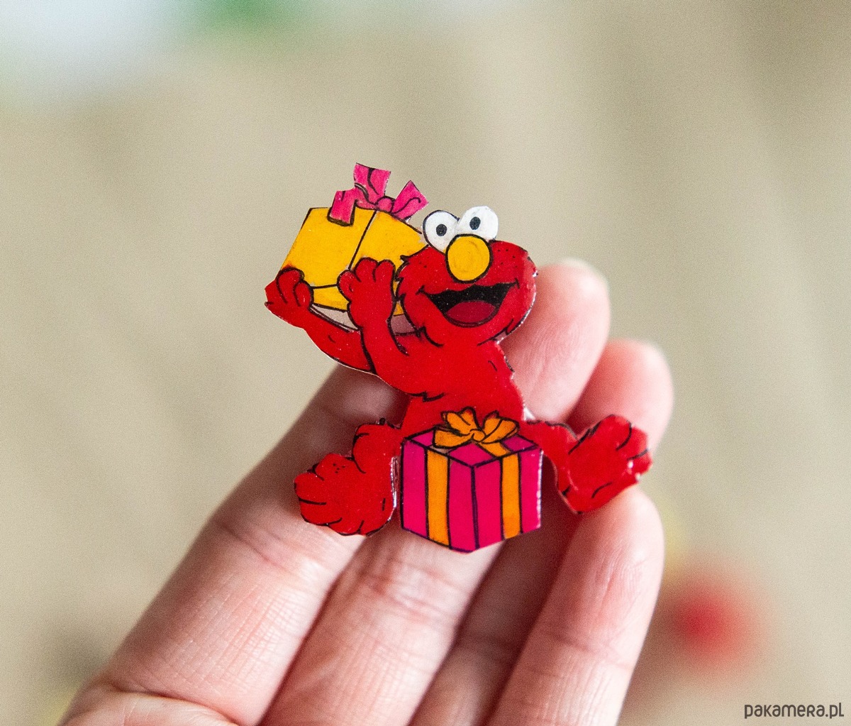 Urocza przypinka z Elmo z Ulicy Sezamkowej trzymającym prezenty – pełna koloru, świątecznej energii i charakterystycznego, radosnego uroku tej kultowej postaci. Idealna, by dodać odrobiny dziecięcej radości do kurtki, torby czy swetra, a także jako prezent dla fanów klasycznych bohaterów.