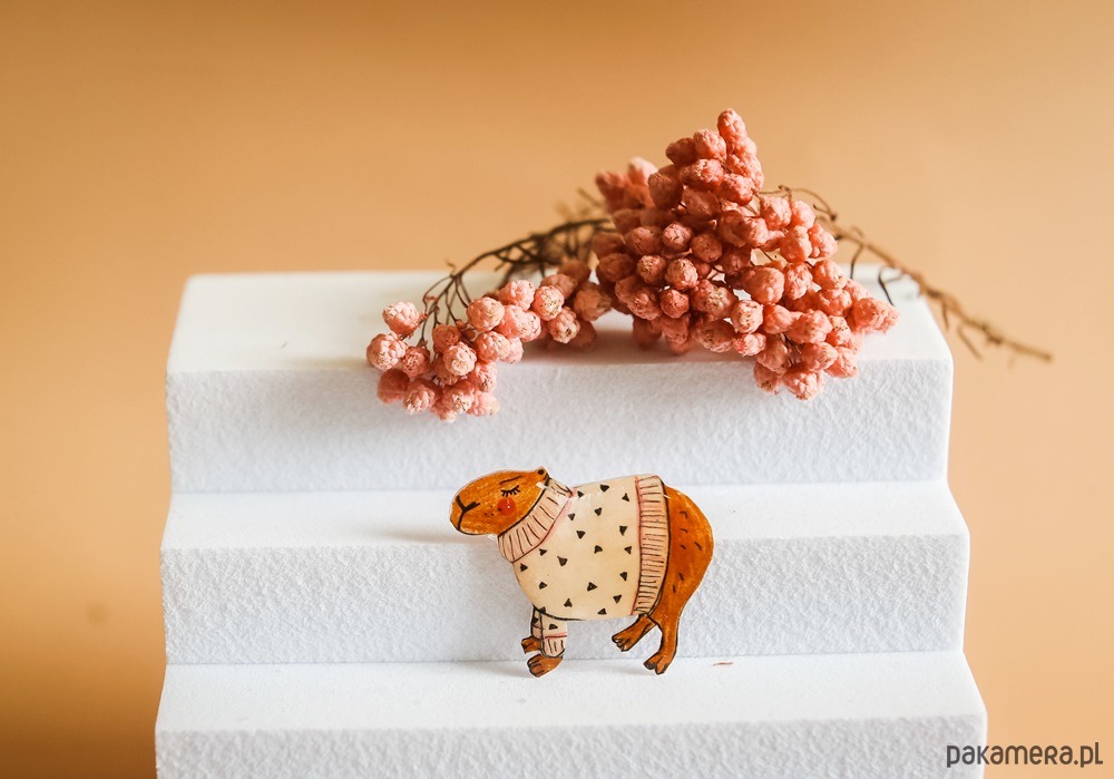 Przypinka z malutką kapibarą Marysią będzie doskonałym pomysłem na prezent, dodając humoru i pikanterii każdemu strojowi. Wpinając pin w płaszcz, koszulę czy sweter, można łatwo odmienić ich charakter, podkreślając indywidualne preferencje i zainteresowania osoby noszącej słodką kapibarkę :)