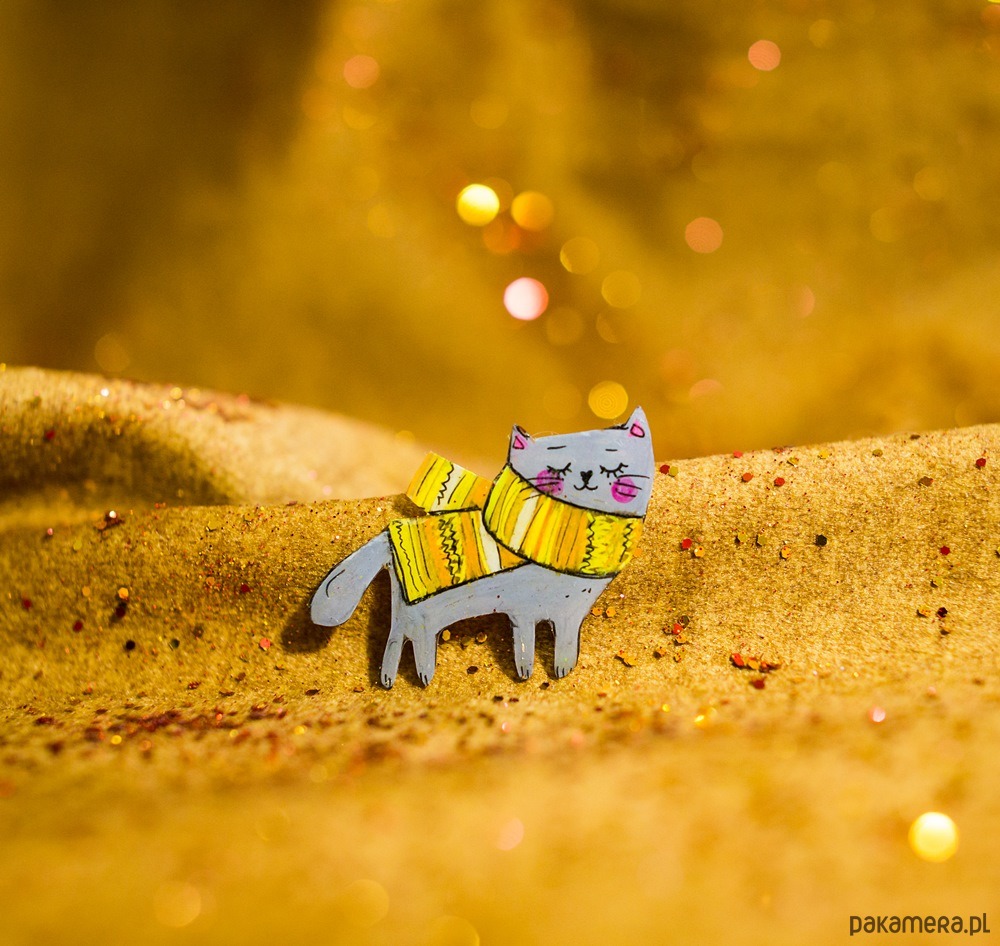 Przypinka z szarym kotkiem w żółtym szaliku – idealna dla tych, którzy chcą nosić ze sobą odrobinę mruczącej elegancji. Kotek wygląda, jakby właśnie wyszedł z modnego butiku: szalik żółty, mina poważna, a w oczach pytanie ‘gdzie moje drugie śniadanie?’. Całość zapakowana w uroczy tekturowy kartonik, który sprawia wrażenie, jakby kotek właśnie w nim zamieszkał. Uwaga: może wywoływać niekontrolowane „awww” u przechodniów.”