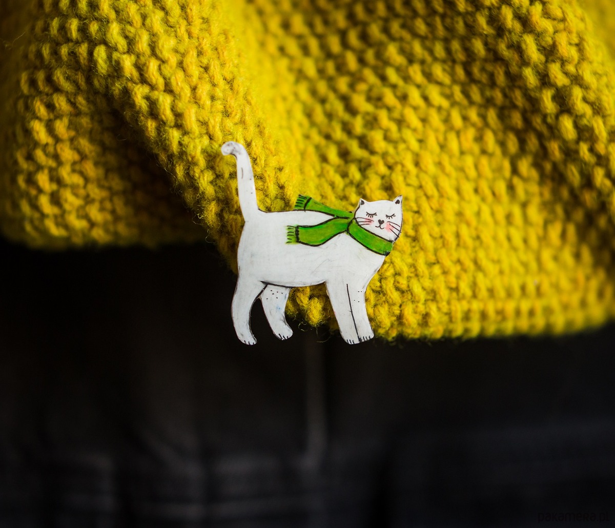 Kotka posiada metalowy pin, czyli tzw. wpinkę, dzięki której można ją swobodnie wpiąć w dowolny rodzaj ubioru oraz łatwo z niego ściągnąć, nie uszkadzając przy tym materiału. Najlepszy prezent dla kociary !!!