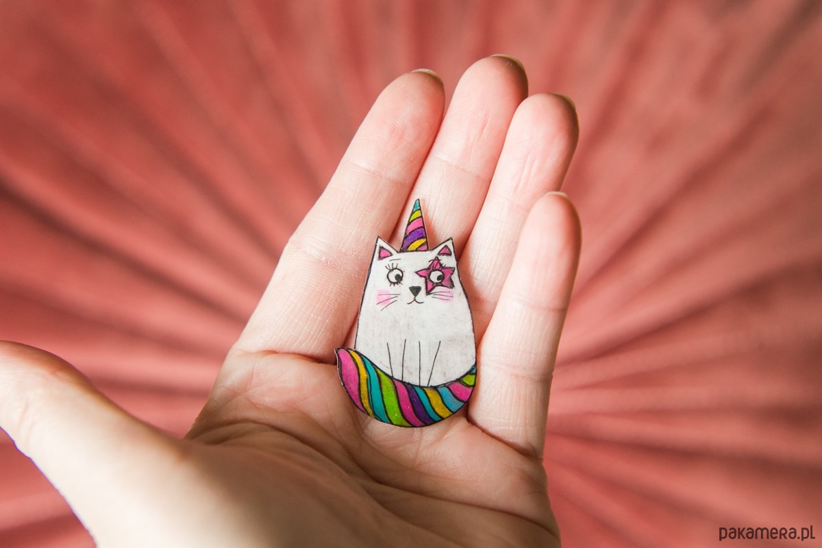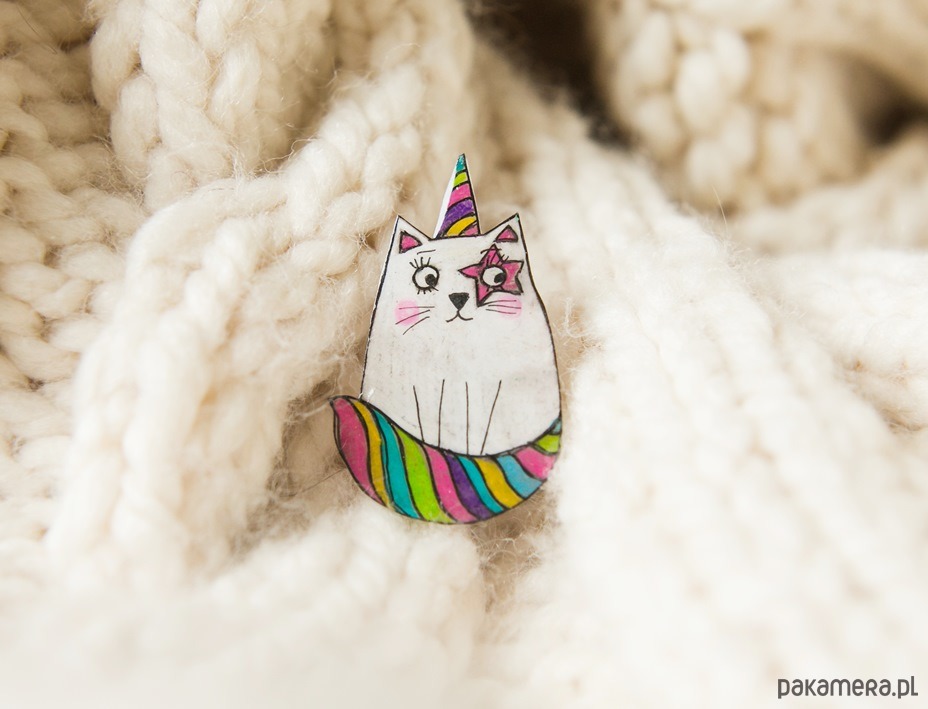 Urocza przypinka z kotorożcem — fantastycznym kotkiem z malutkim, magicznym rożkiem. Postać ma słodki, miękki wyraz pyszczka, słodkie kolory i subtelne zdobienia, które nadają jej wyjątkowo baśniowego charakteru. To mała, pełna wdzięku ozdoba, która dodaje odrobiny magii każdemu plecakowi, kurtce czy torbie.