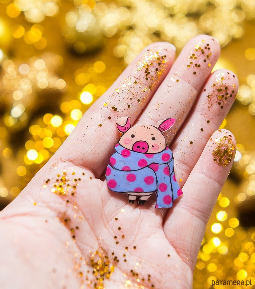 Ta przypinka to mała dawka radości w postaci słodkiego prosiaczka w ciepłym szaliku! Ręcznie rysowany, z szalikiem owiniętym wokół szyi, prosiaczek z pewnością doda ciepła i uroku każdej stylizacji. Zabawna przypinka , pełna ciepła i radości – idealna na zimowe dni, ale także wtedy, gdy chcesz dodać odrobinę uśmiechu do swojego wyglądu.