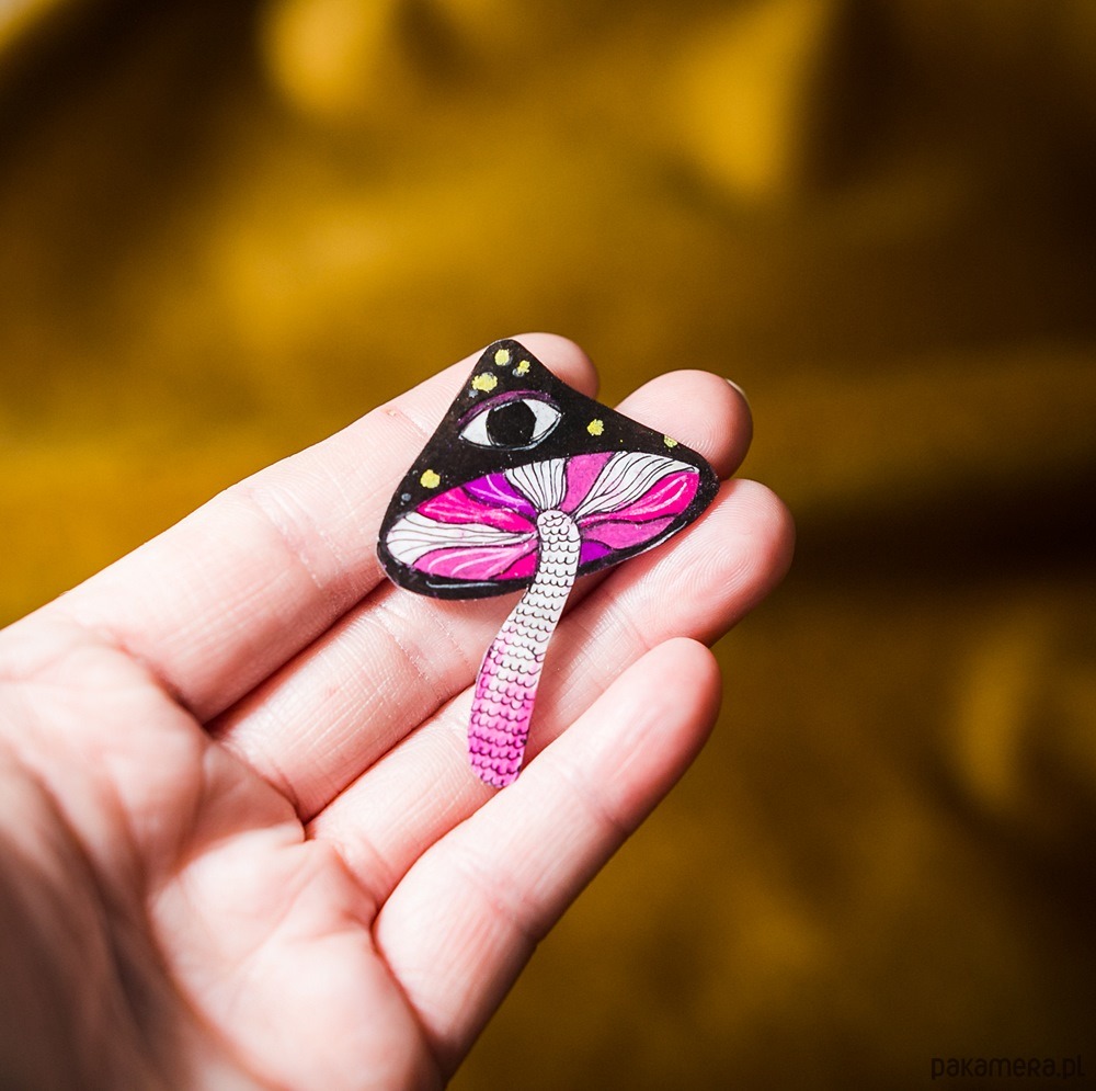 Piękna przypinka ręcznie rysowana, zabezpieczona lakierem ekologicznym.