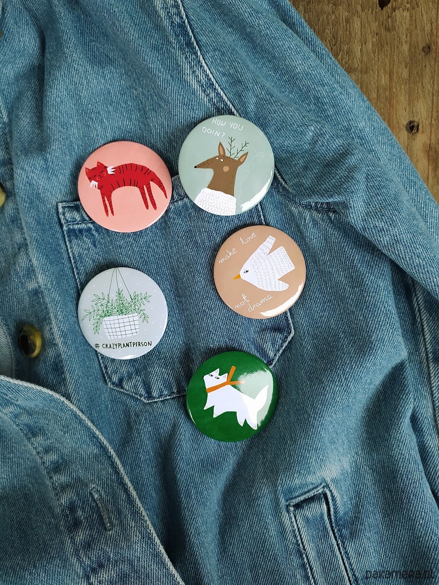 Przypinka z autorską ilustracją.