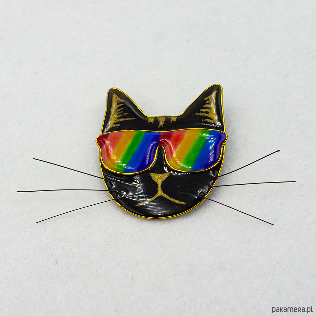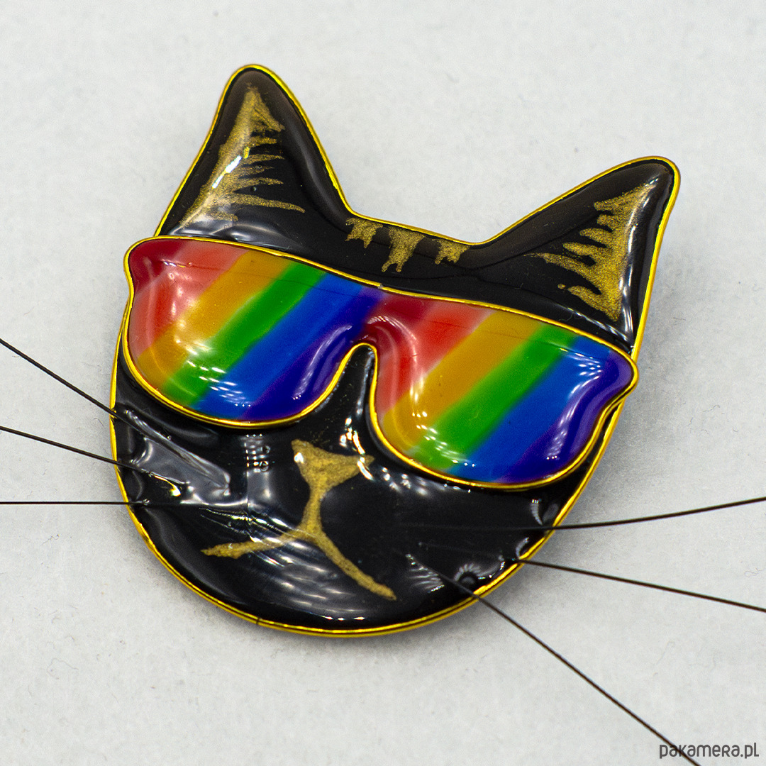 Zaprojektowałam i zrobiłam tę przypinkę z żywicy na prośbę przyjaciela, który chciał ją podarować partnerowi, wielbicielowi kotów. Jednak, kiedy obejrzałam końcowy efekt, postanowiłam dodać ją do stałej oferty. Przypinka jest wykonana w całości ręcznie i pomalowana przeze mnie. Uroczo łobuzerski kot aż tryska tęczową dumą! Świetna okazja, by kupić coś rzeczywiście oryginalnego i unikalnego.