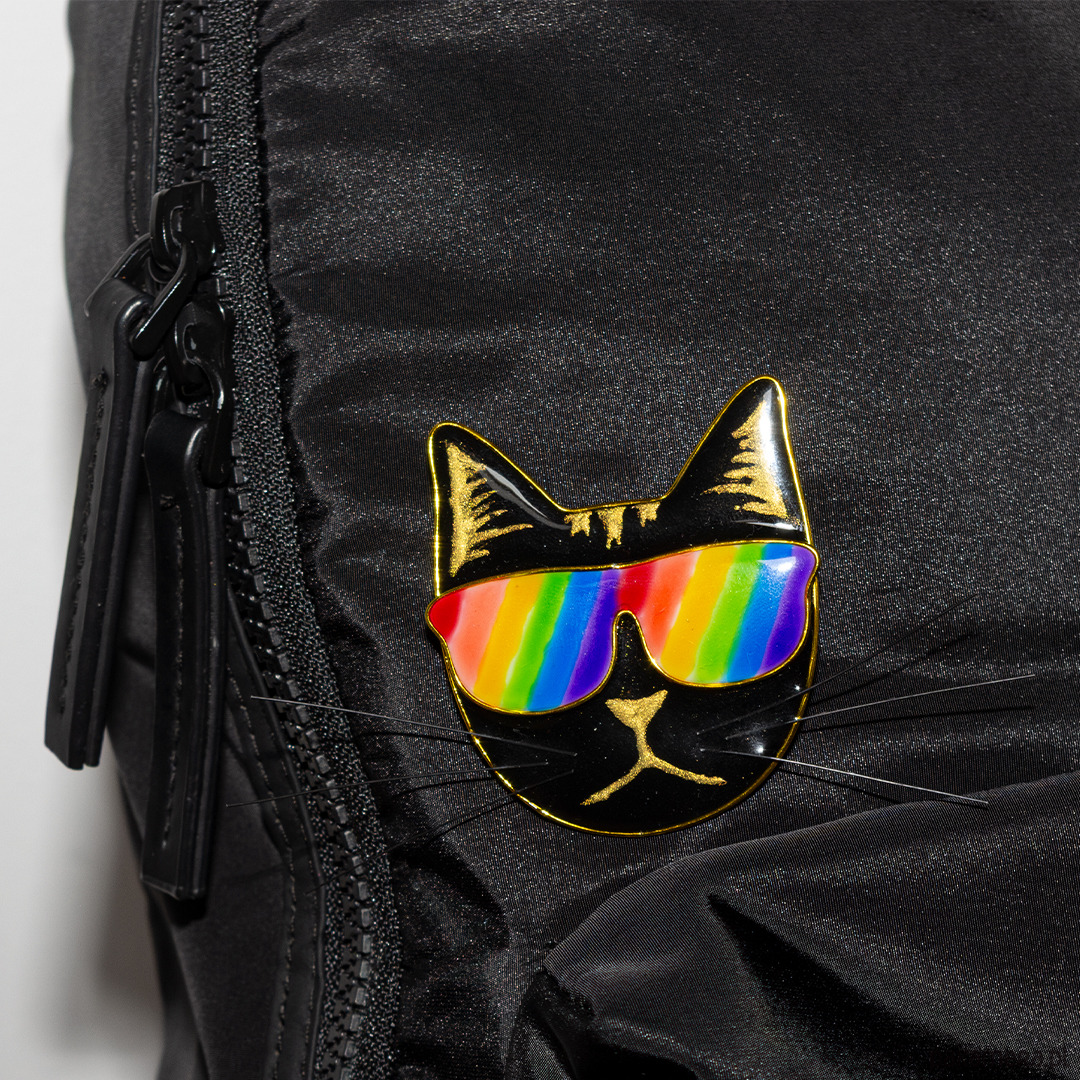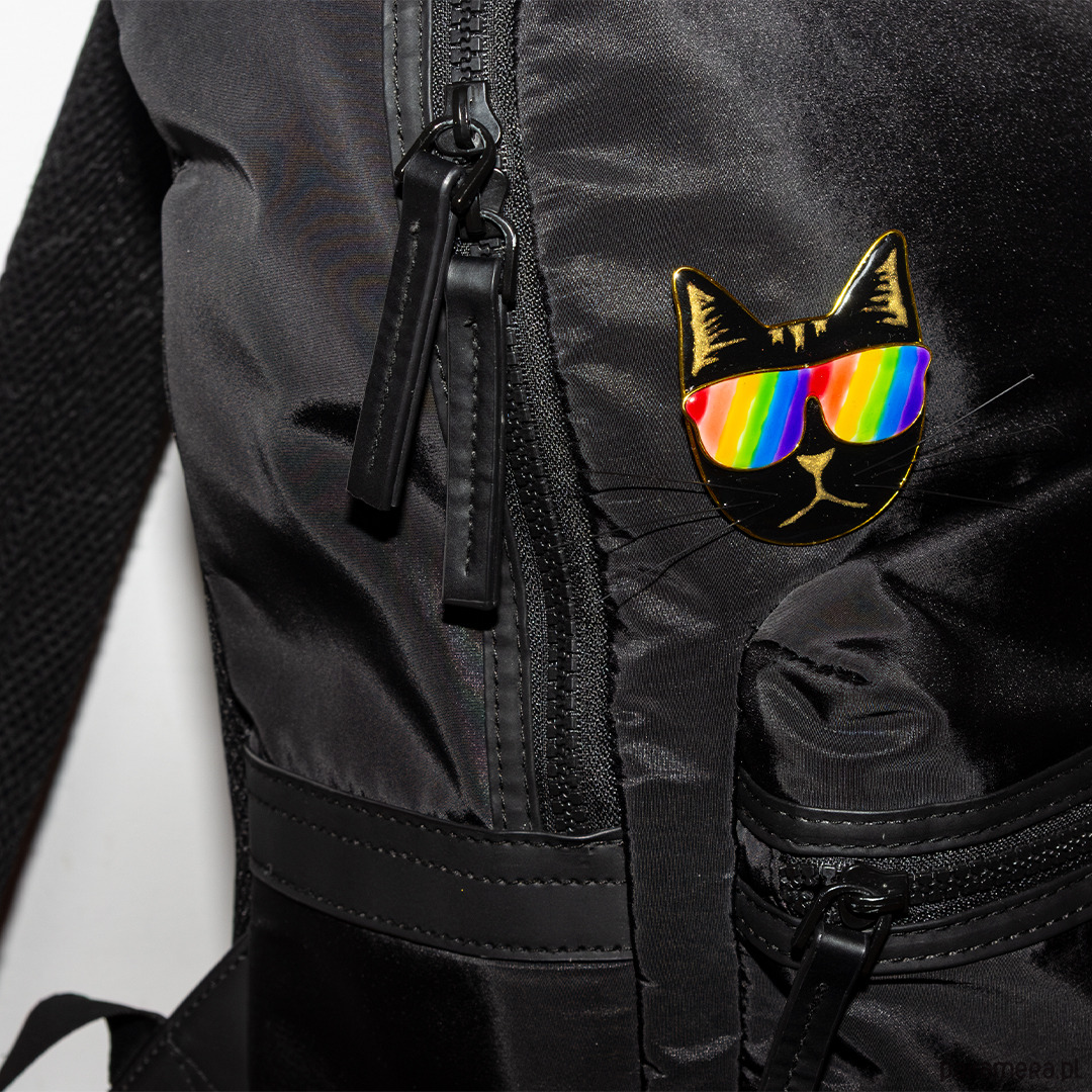 Przypinka tęczowa pride z kotem pin 001