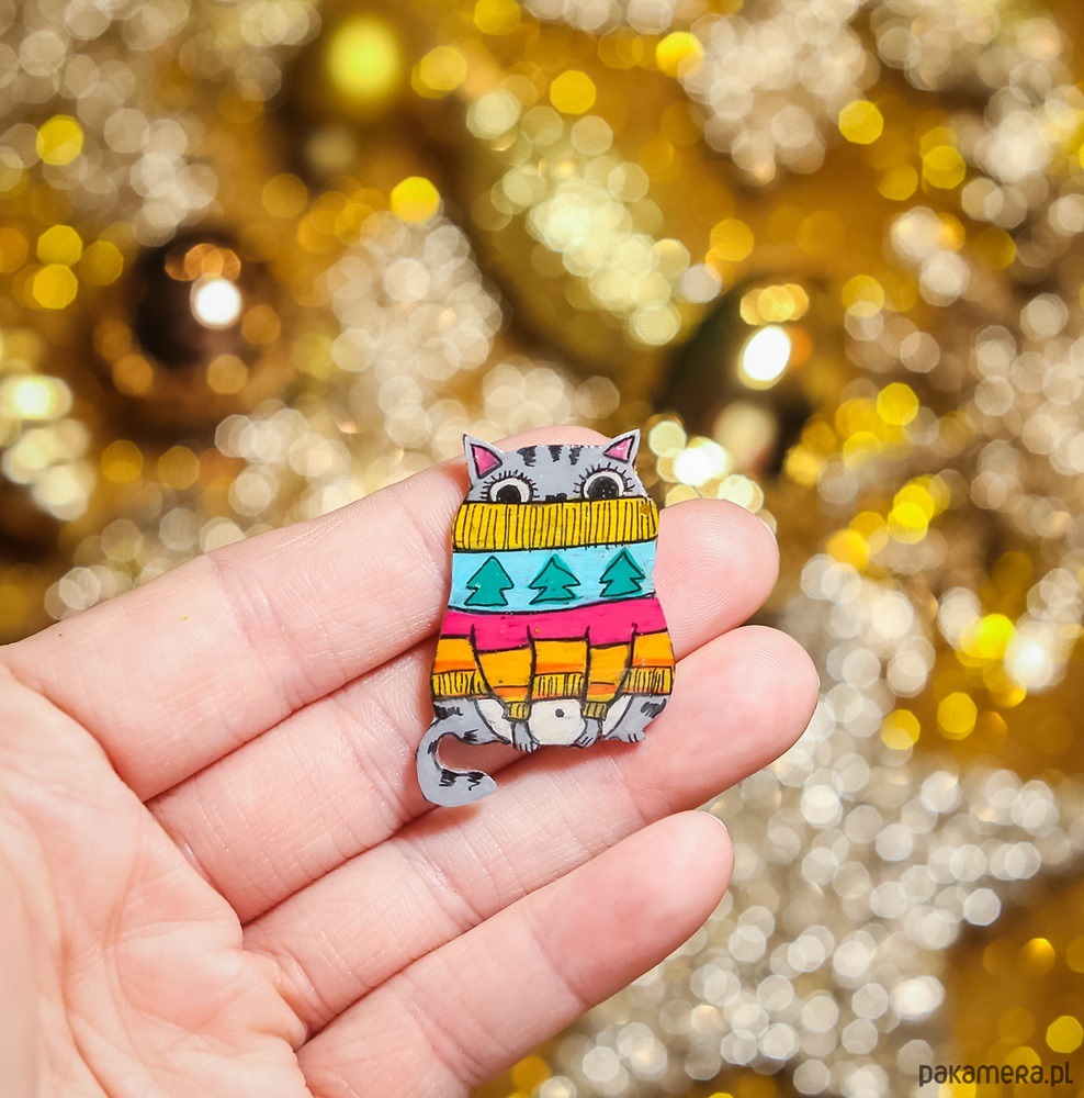 Kot Hirek w swetrze – przypinka z humorem, dla tych, co wiedzą, że styl i sarkazm idą łapka w łapkę.