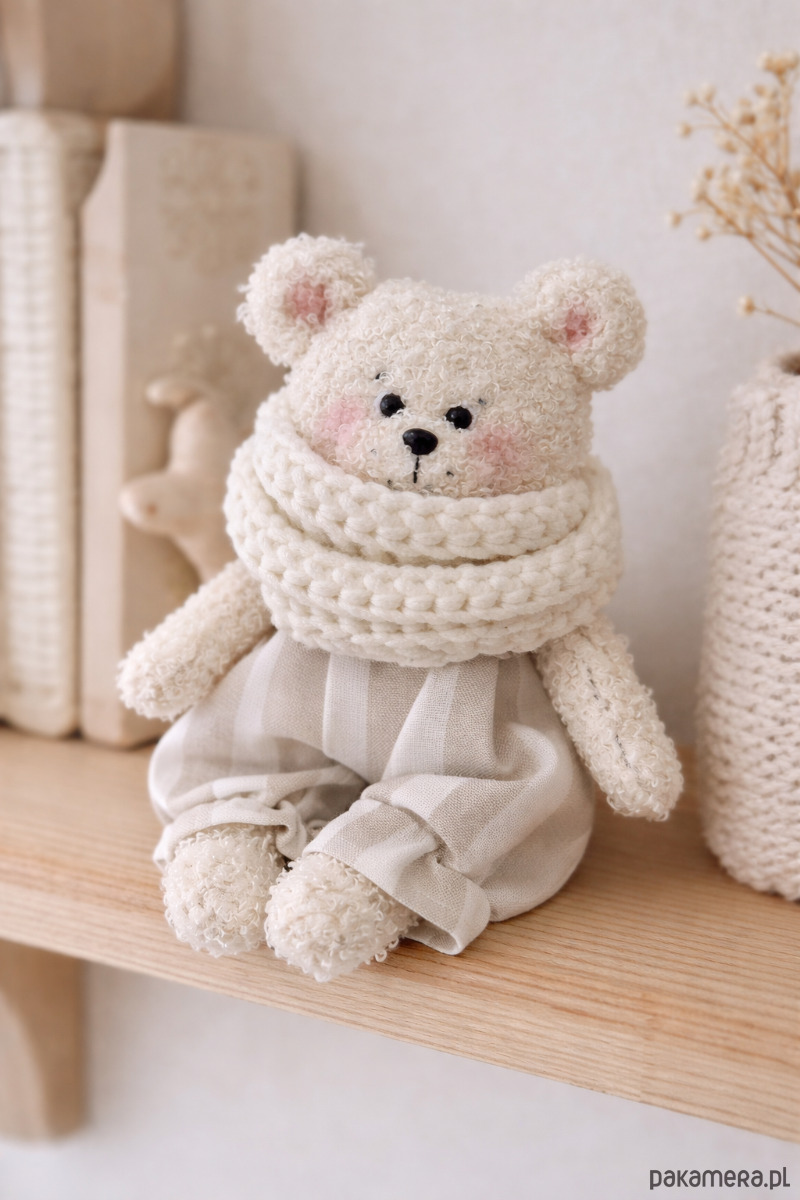 Wspaniały pluszowy Miś w stylu boho, bedzie także idealnym dopełnieniem dziecięcego pokoju.