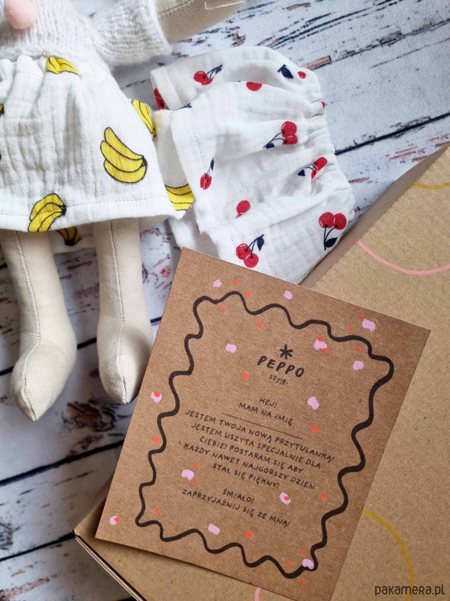 Przytulanka jest zapakowana w pudełeczko i gotowy do wręczenia.