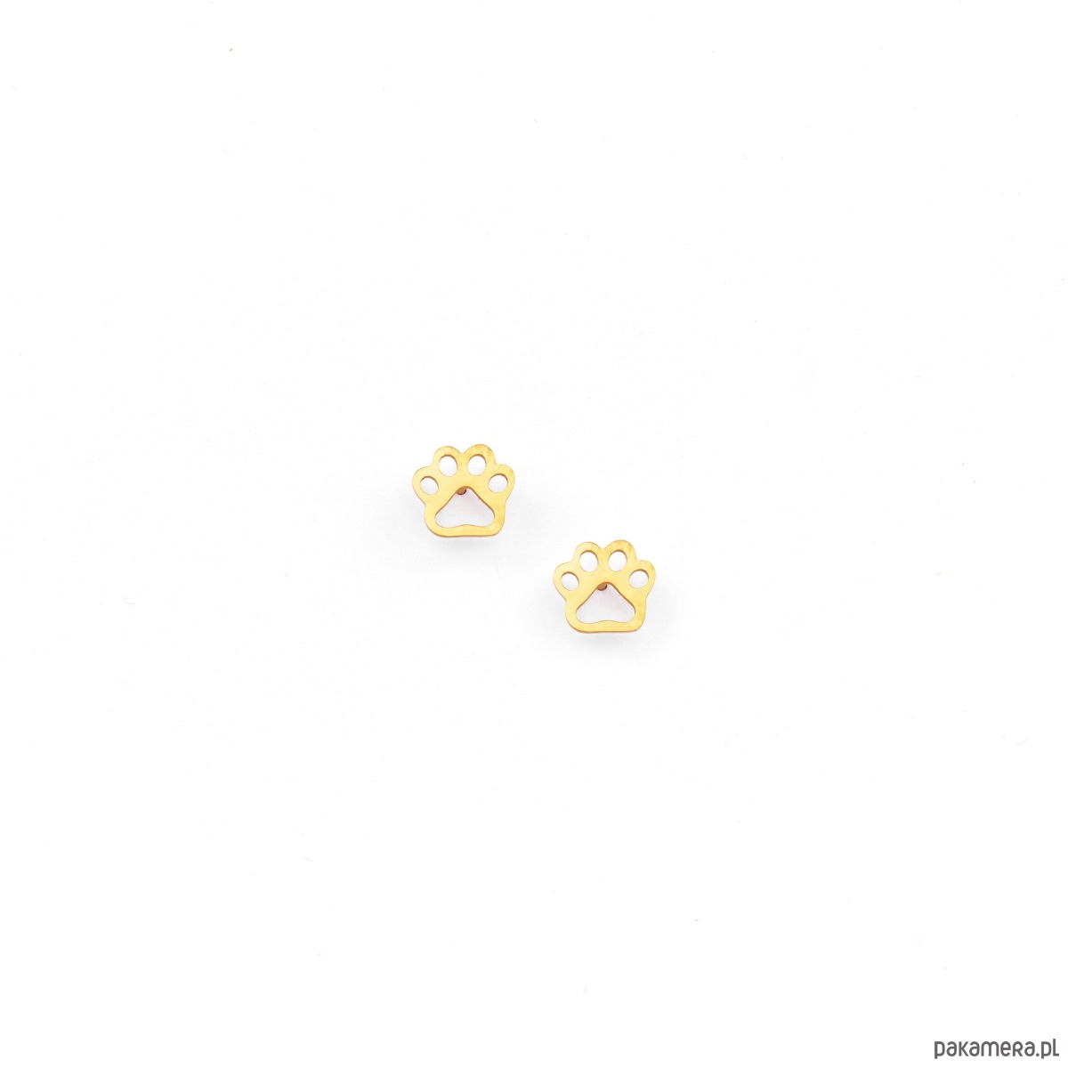 Psie łapki - kolczyki sztyfty ze stali szlachetnej pozłacanej