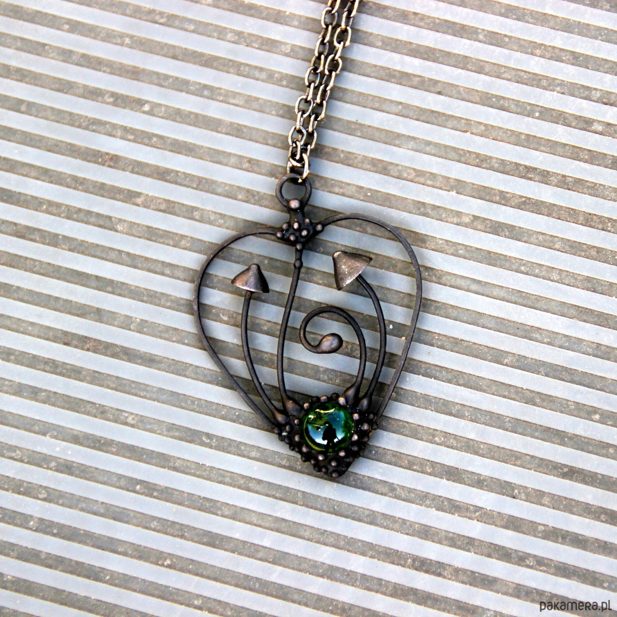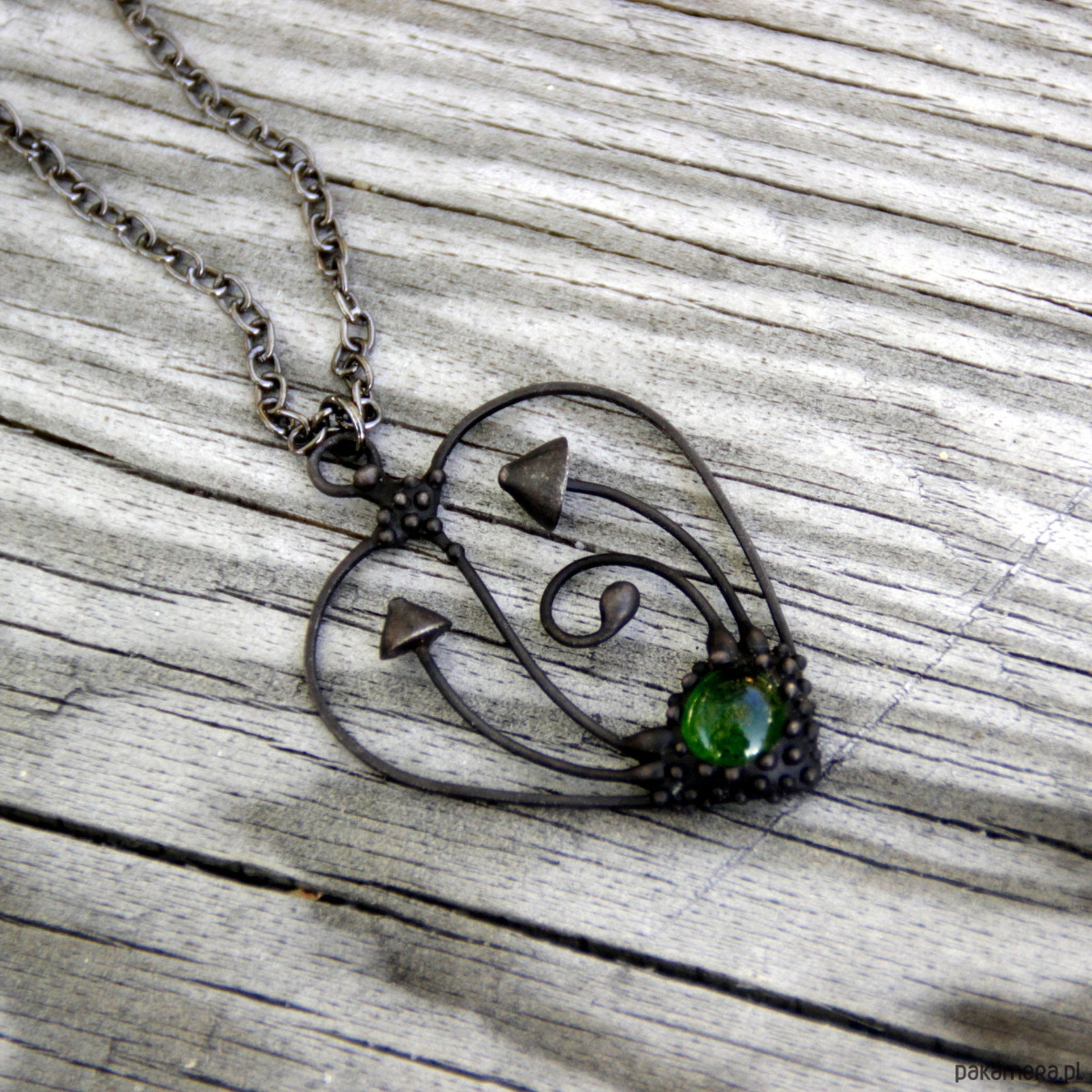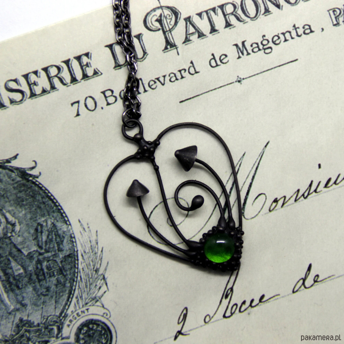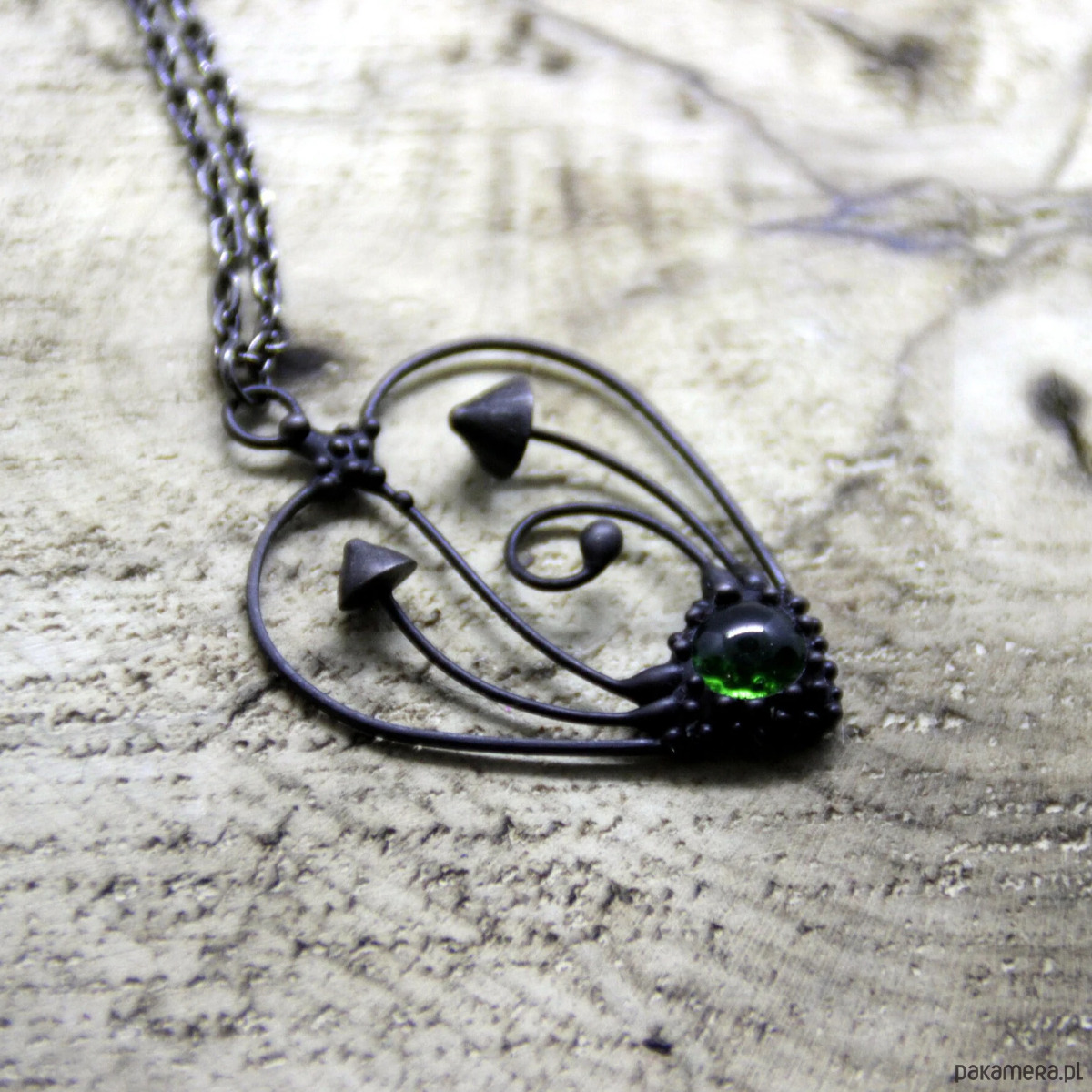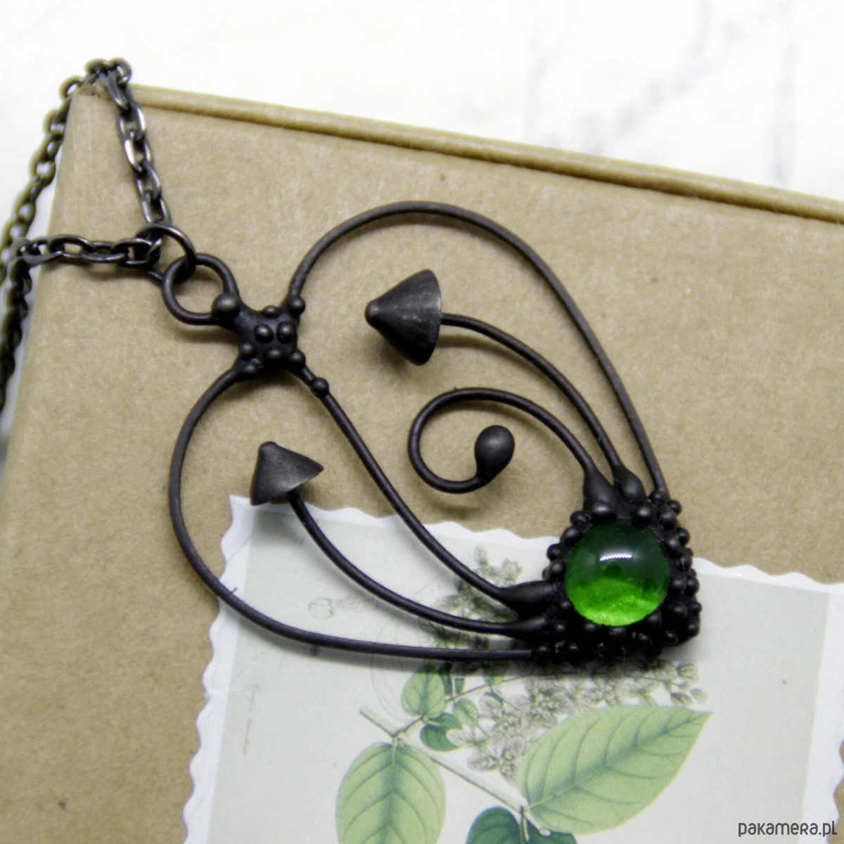 Psychodeliczny wisiorek z grzybem w kształcie serca z zielionym szkłem