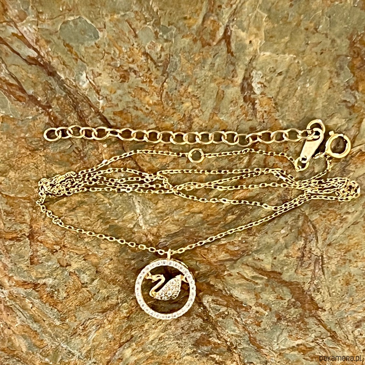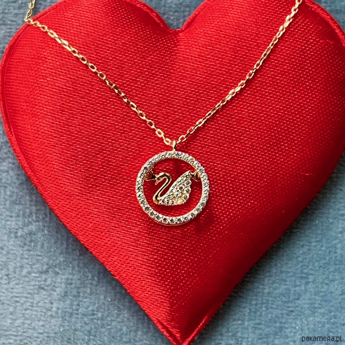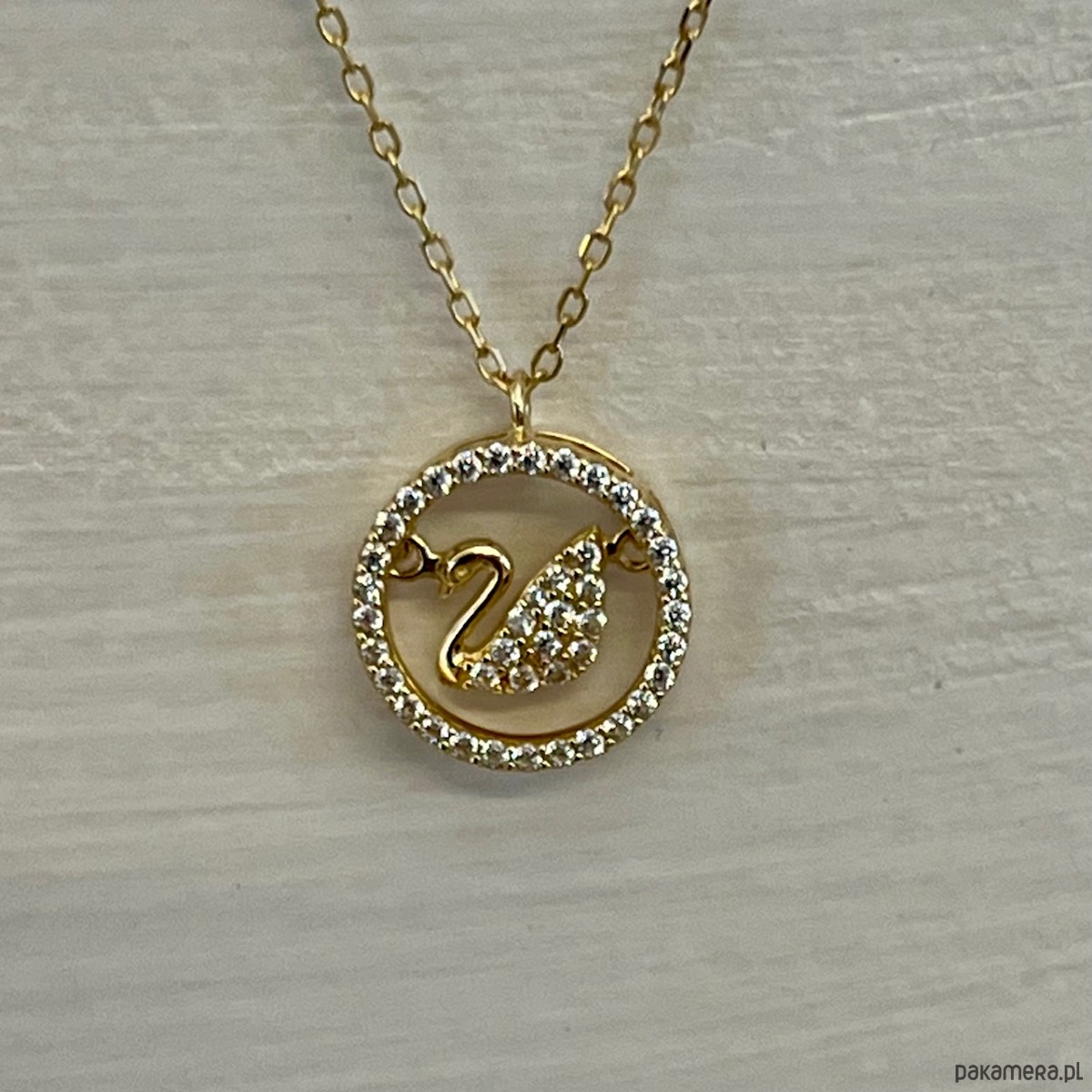 Ten wyjątkowy naszyjnik przedstawia subtelnego łabędzia – symbol miłości, wierności i czystości serca – zamkniętego w lśniącym okręgu wysadzanym cyrkoniami. Ruchomy element sprawia, że ptak delikatnie porusza się przy każdym kroku, dodając biżuterii lekkości i życia.