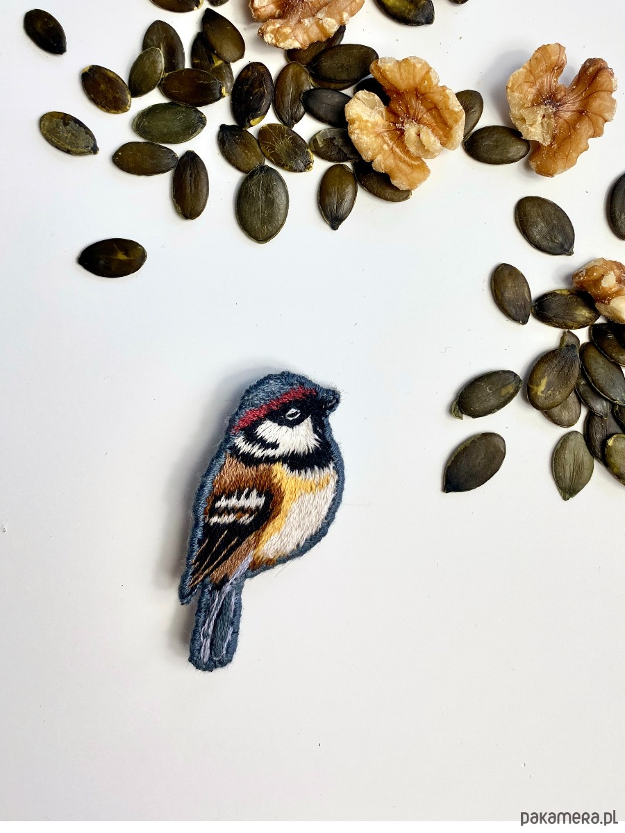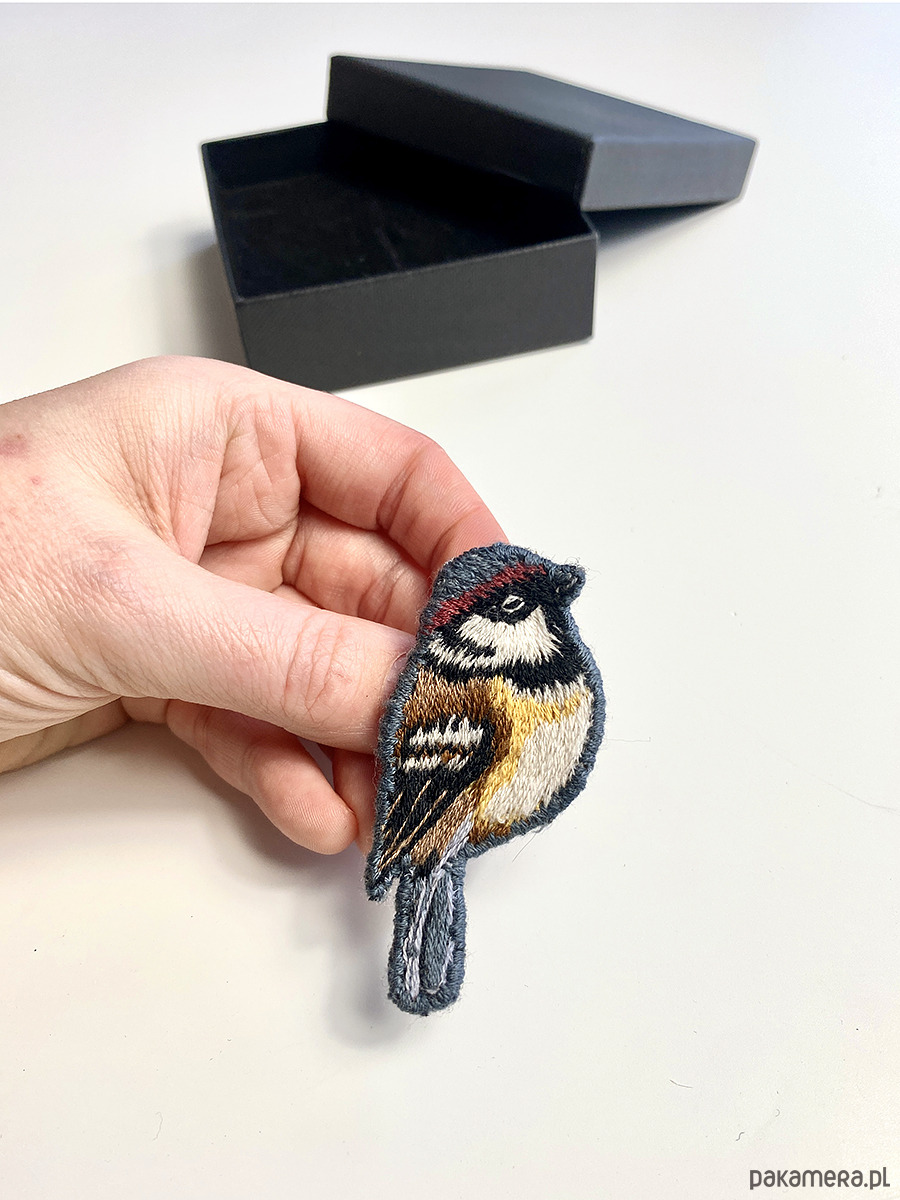 UNIKAT - Ptak - ręcznie haftowana broszka