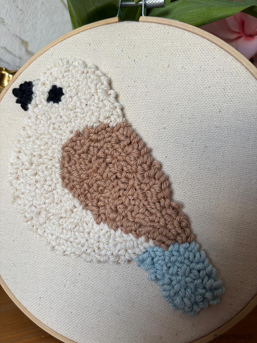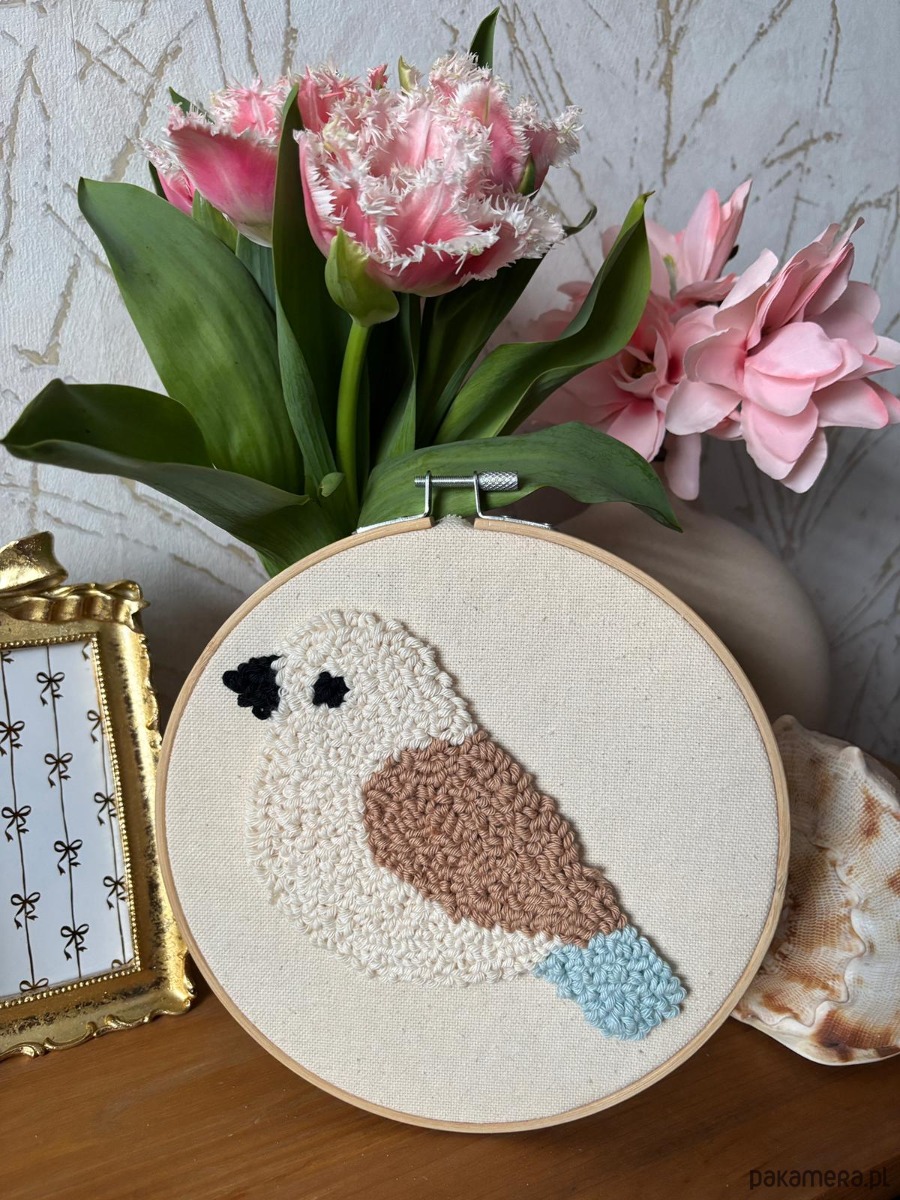 Ręcznie wykonana dekoracja ścienna w technice punch needle.