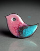 Oryginalna ceramiczna broszka, wykonana z delikatnej gliny kamionkowej, szkliwiona mieszanką zielonych i różowych szkliw z efektem plamek, zapięcie w kolorze starego złota. Długość ok. 4cm. Polecam