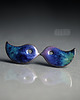 Efektowne kolczyki w formie sztyftów, ręcznie wykonane z delikatnej kamionki, jednostronnie szkliwione mieszanką fioletowo błękitnych szkliw z efektem plamek, na antyalergicznych sztyftach w kolorze srebrnym.długość elementu ceramicznego ok. 17mm, Polecam