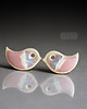 Efektowne kolczyki w formie sztyftów, ręcznie wykonane z delikatnej kamionki, jednostronnie szkliwione mieszanką różowych szkliw z efektem plamek, na antyalergicznych sztyftach w kolorze srebrnym.długość elementu ceramicznego ok. 17mm,