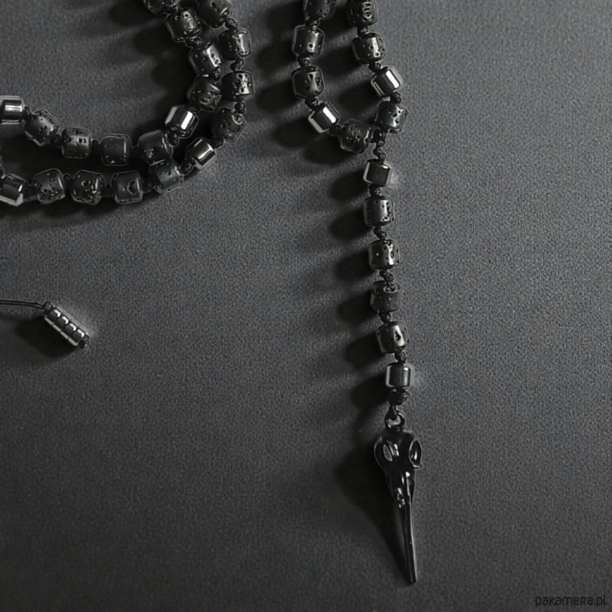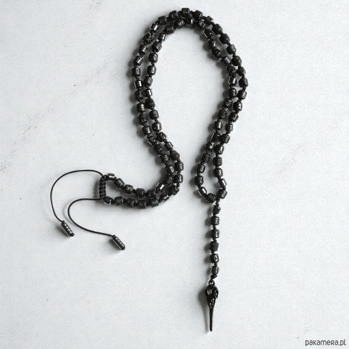 PTASZOR : supełkowany naszyjnik męski : lawa, HEMATYT