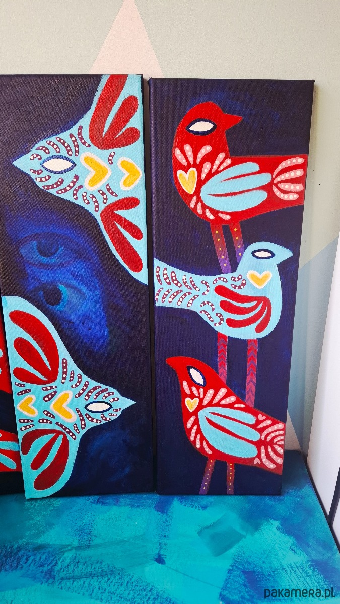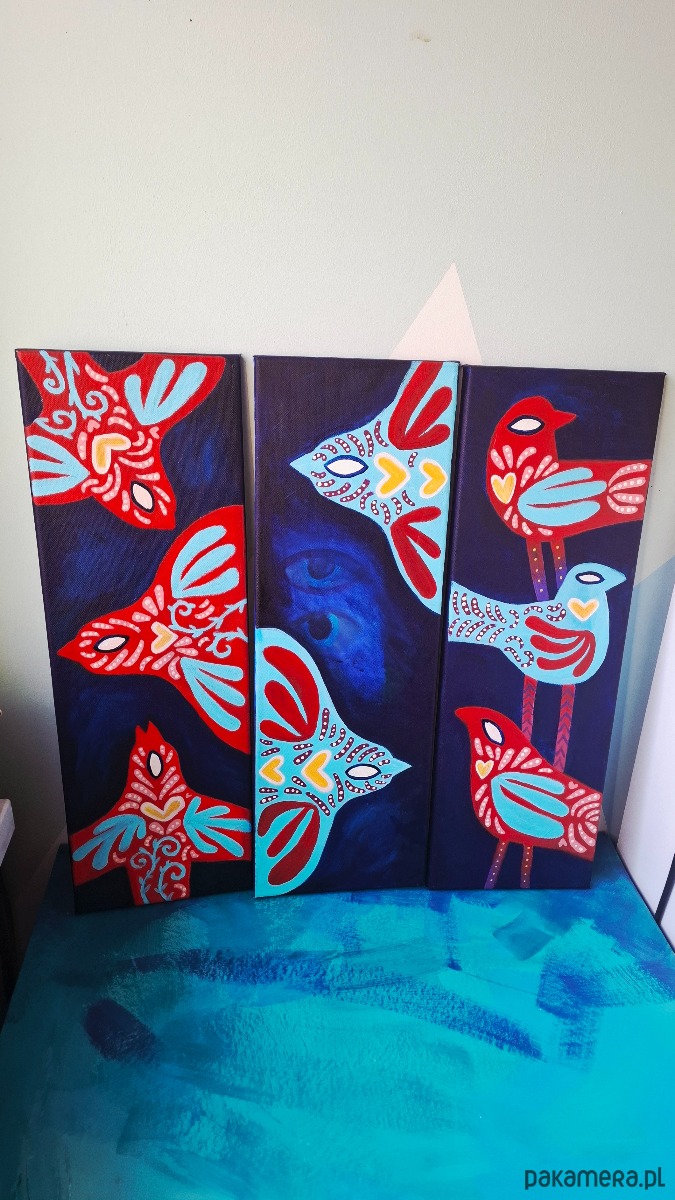 Ptaszory tryptyk 3 obrazy akrylowe