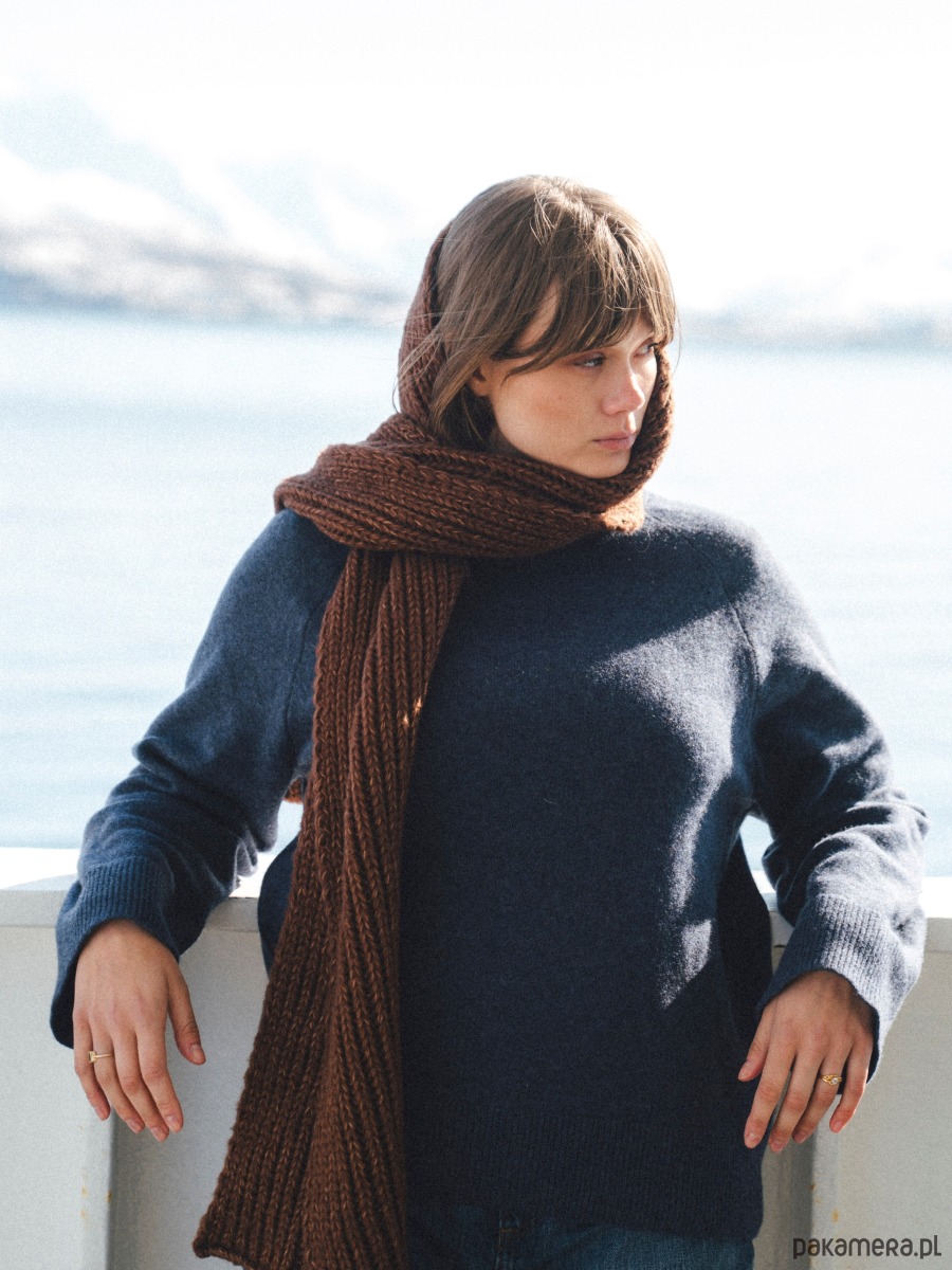 PUCHACZ Brązowy - duży mięsisty szalik z wełny merino i bawełny
