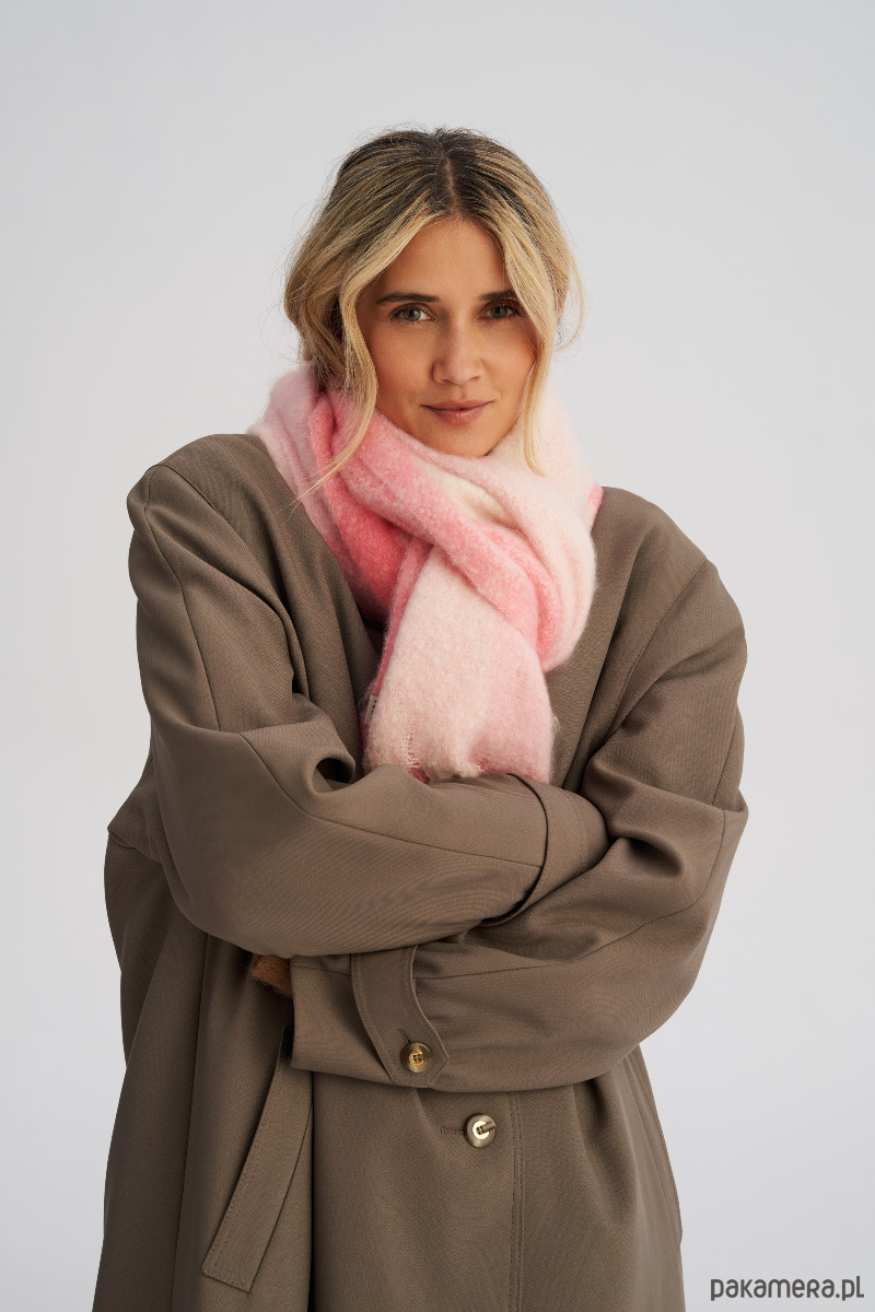 Miękki i puszysty szalik w kratę to idealne połączenie stylu i wygody. Wykonany z poliestru z recyklingu, jest przyjemny w dotyku i zapewnia komfort w chłodne dni. Jego długość pozwala swobodnie owinąć się wokół szyi, a wzór w dużą kratę dodaje elegancji i modnego charakteru.