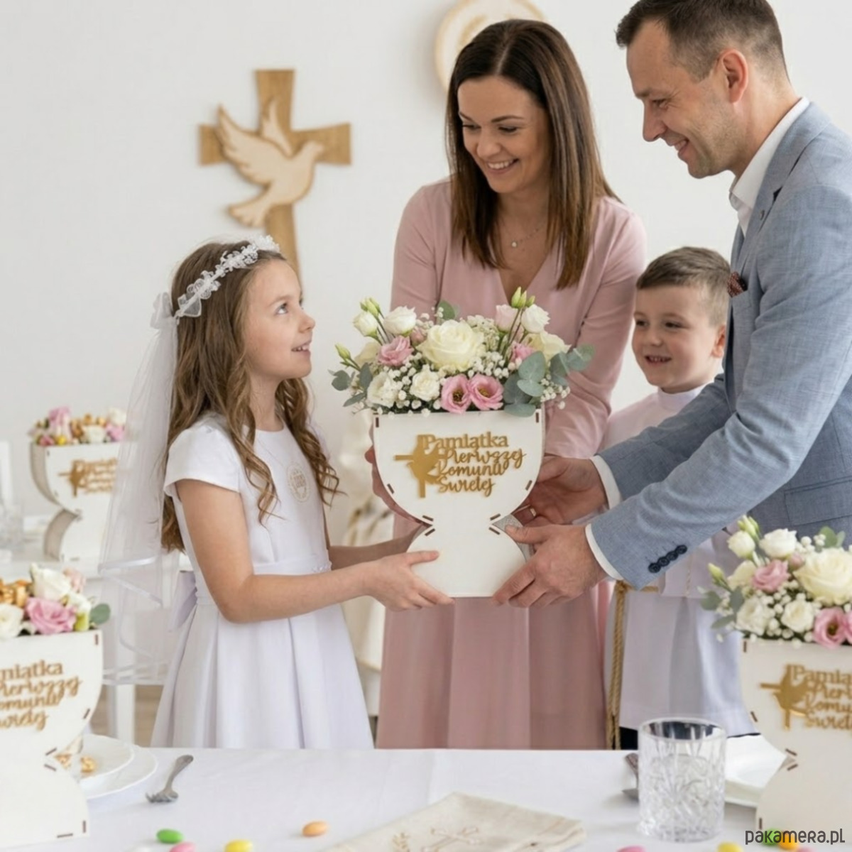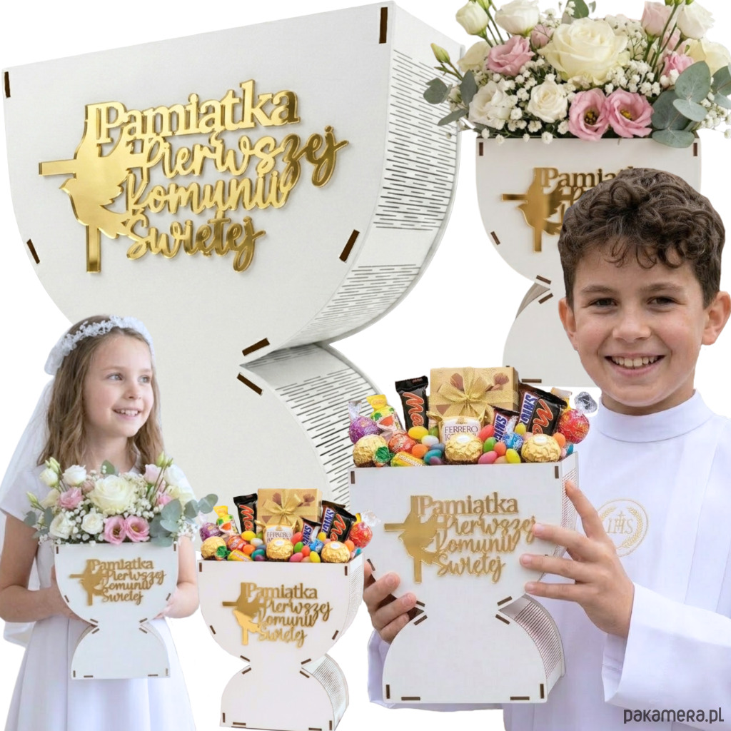 Pudełko Drewniane Kielich Box na Słodycze Kwiaty FlowerBox Pamiątka Komunii