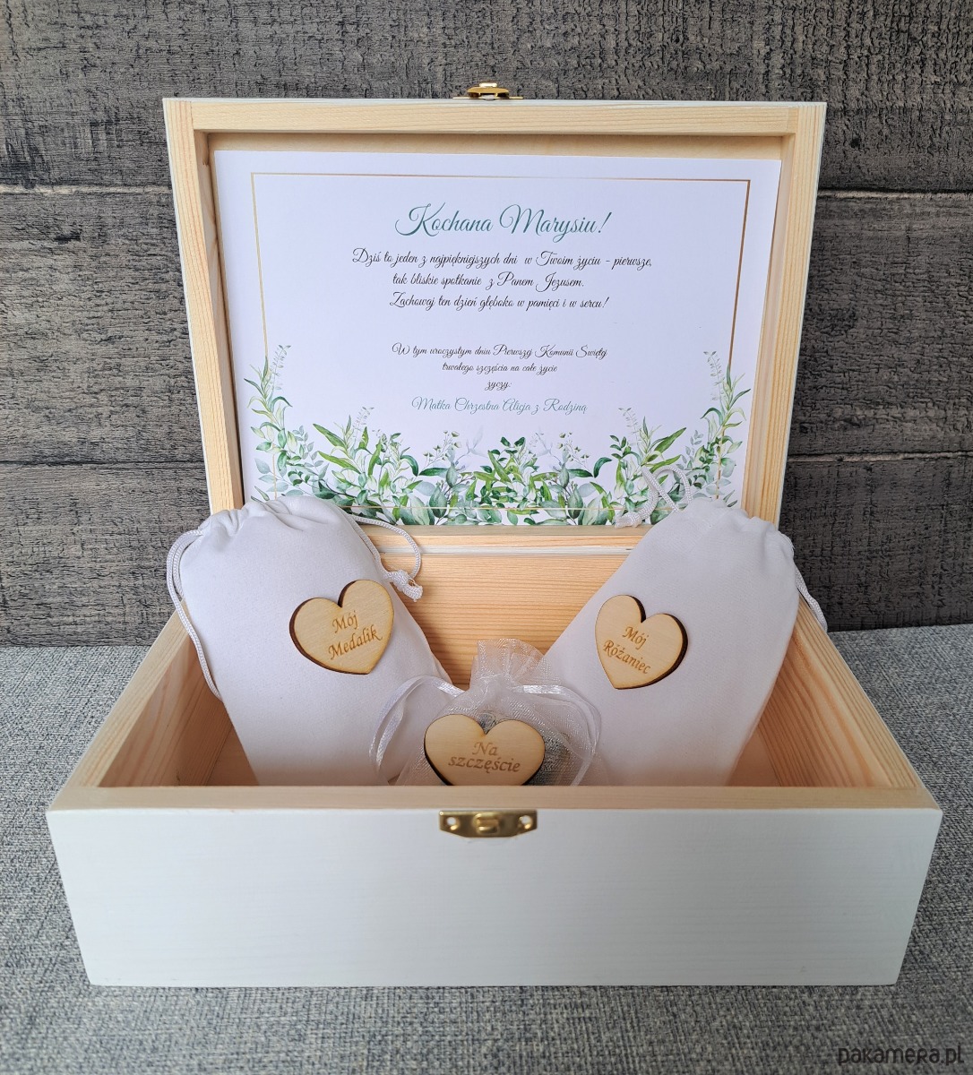 Specjalnie na ta okazję w naszej Manufakturze została zaprojektowana szkatułka, w której można przechowywać wszystkie pamiątki dziecka z tej uroczystości.