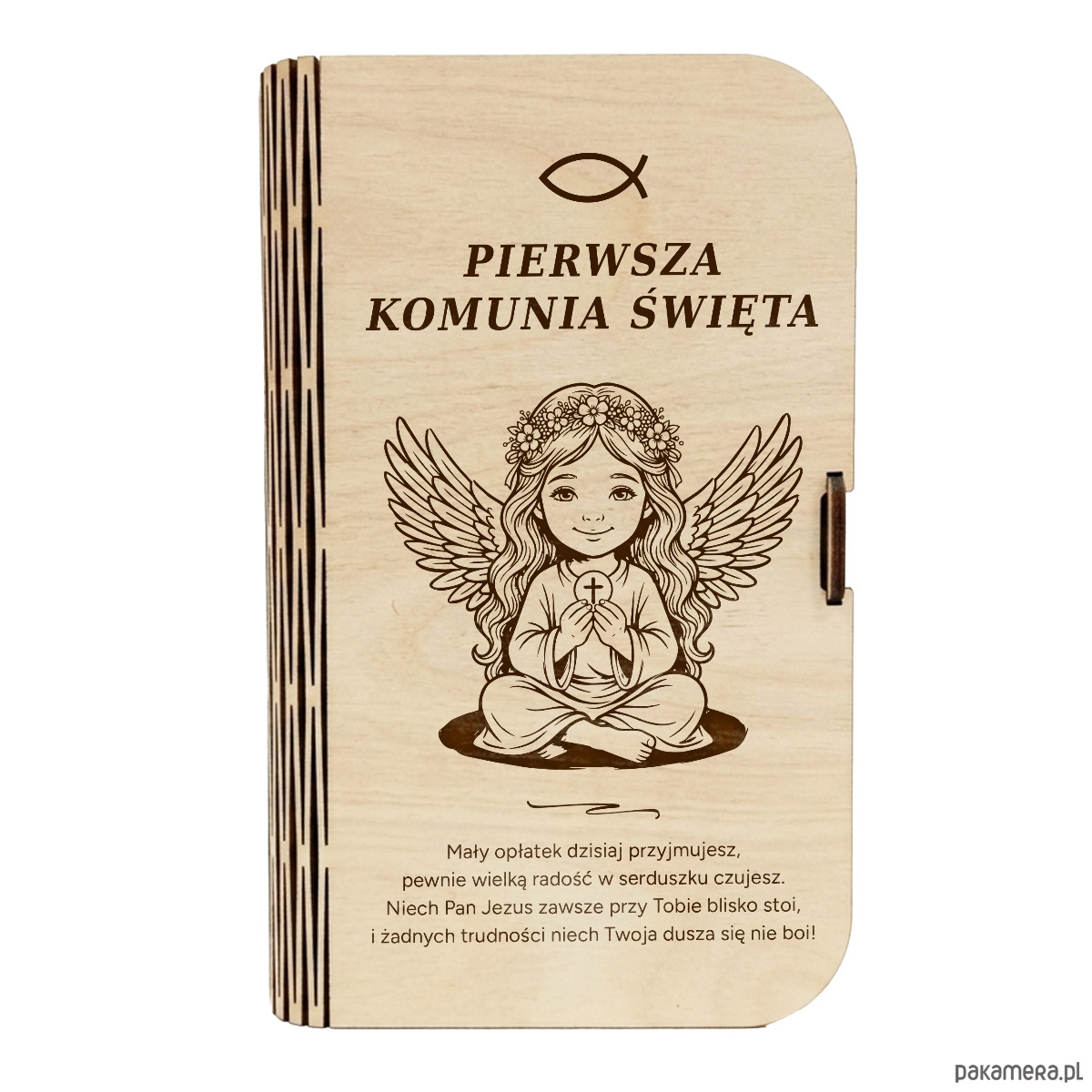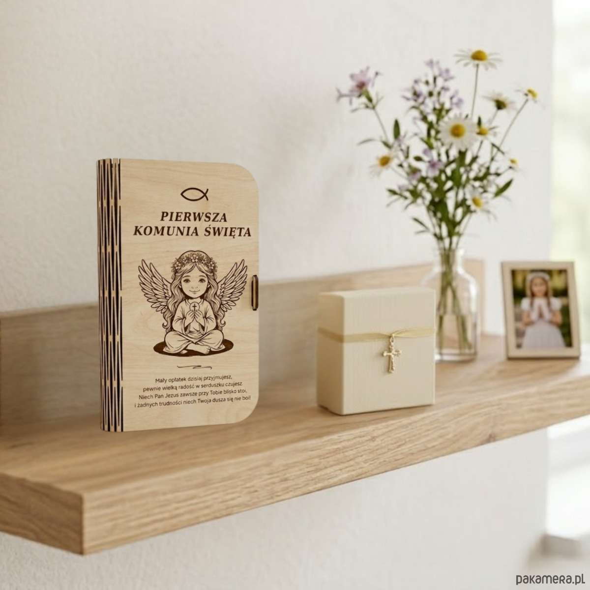 To nowoczesna alternatywa dla tradycyjnej koperty – bardziej elegancka, bardziej osobista i zdecydowanie bardziej wyjątkowa. Drewniane pudełko na pieniądze może być później wykorzystywane do przechowywania pamiątek komunijnych, stając się symbolicznym wspomnieniem tego ważnego dnia.