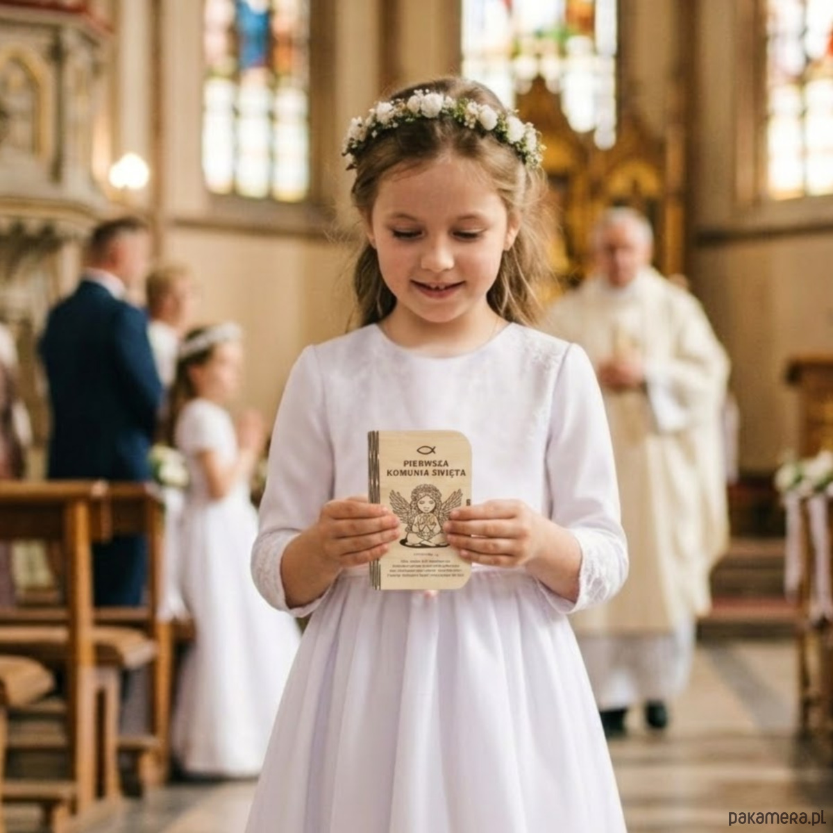 ⭐ Naturalne drewno i minimalistyczny design – elegancja pasująca do każdej komunijnej oprawy