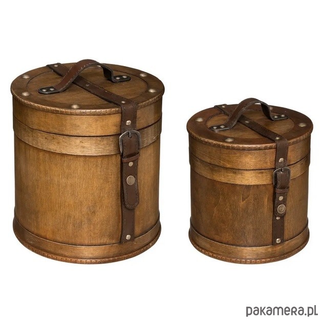Pudełko kuferek 2 szt. , retro, drewniane z paskiem