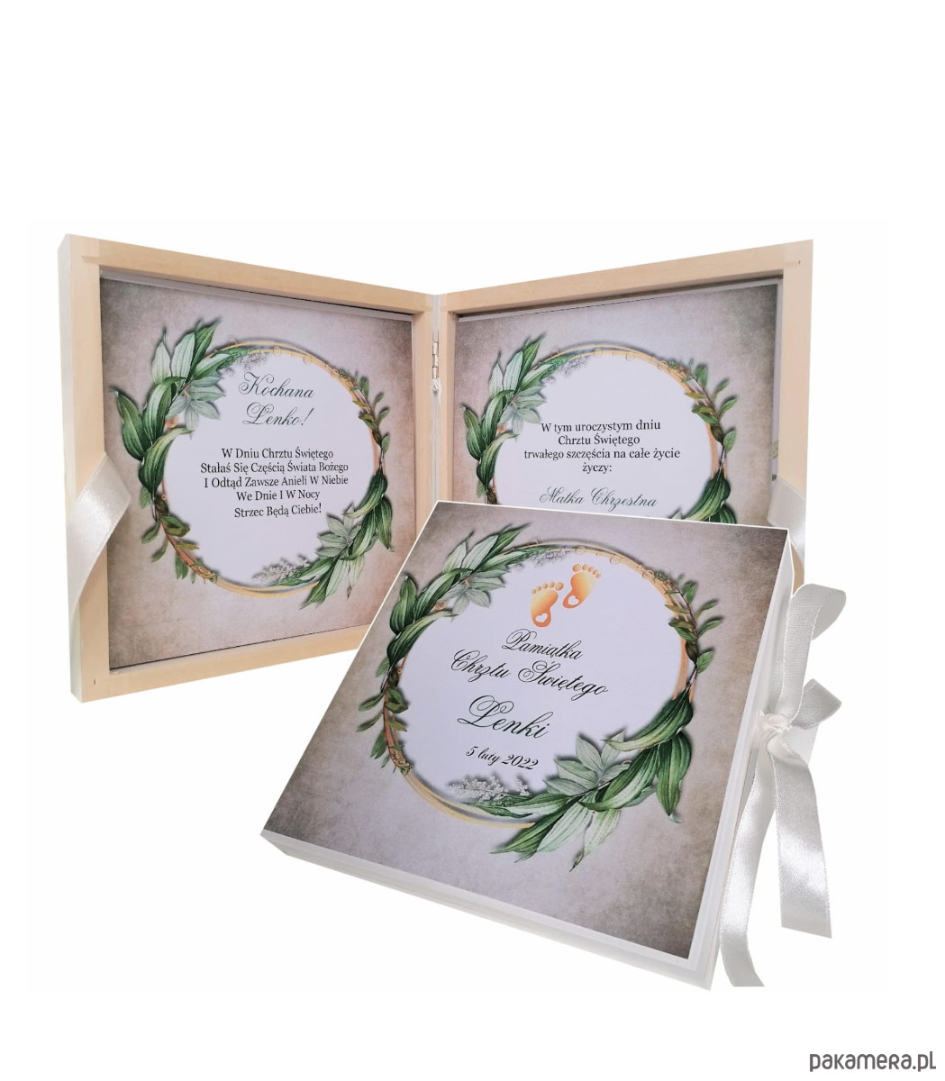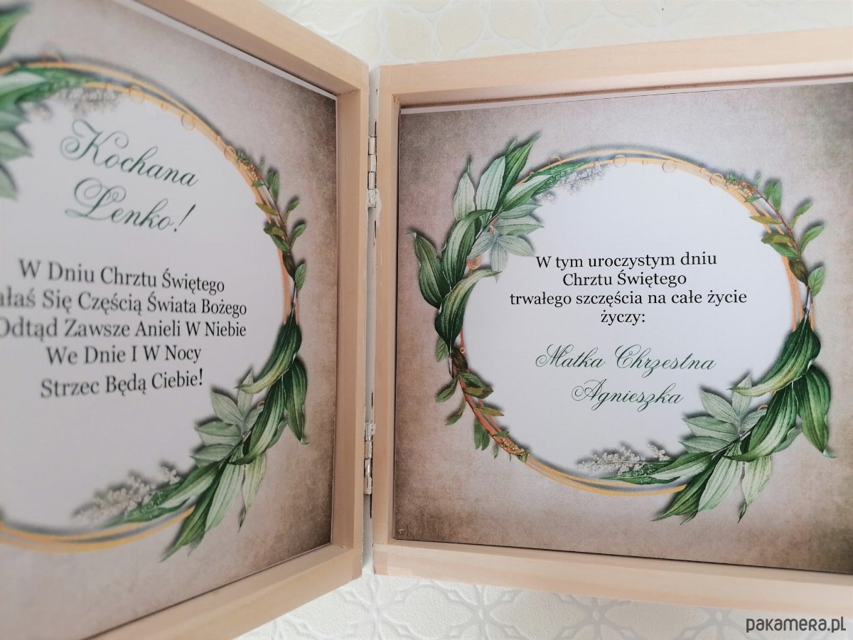 Tak jak wszystkie nasze produkty, również i to pudełko w całości wykonane zostało z drewna a następnie ręcznie przez nas pomalowane i ozdobione wysokiej jakości wydrukiem upamiętniającym wydarzenie Chrztu Świętego.