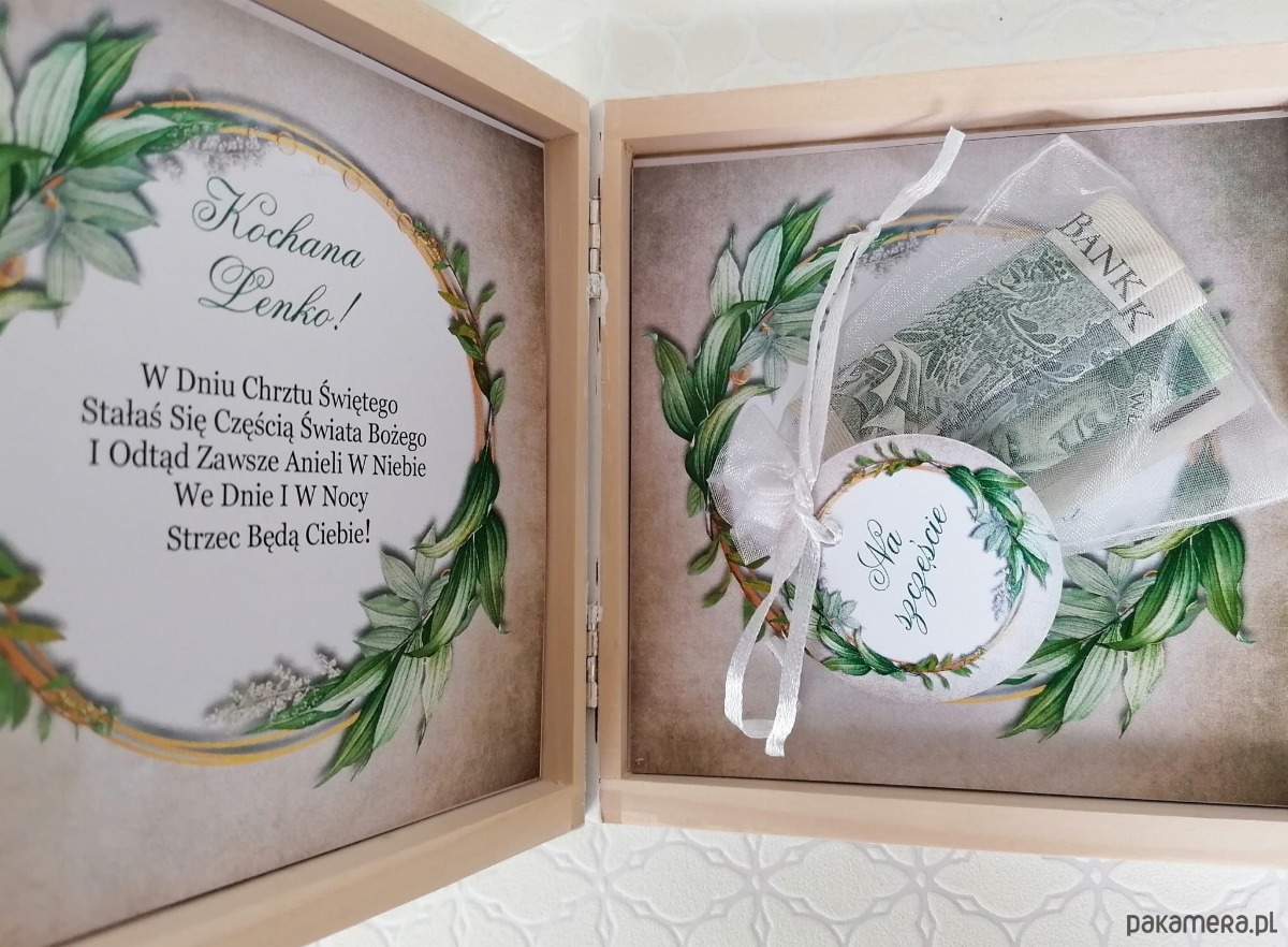 Specjalnie na ta okazję w naszej Manufakturze zostało zaprojektowane niewielkie pudełeczko, w którym w elegancki sposób będziecie mogli przekazać pieniądze oraz złożyć życzenia.