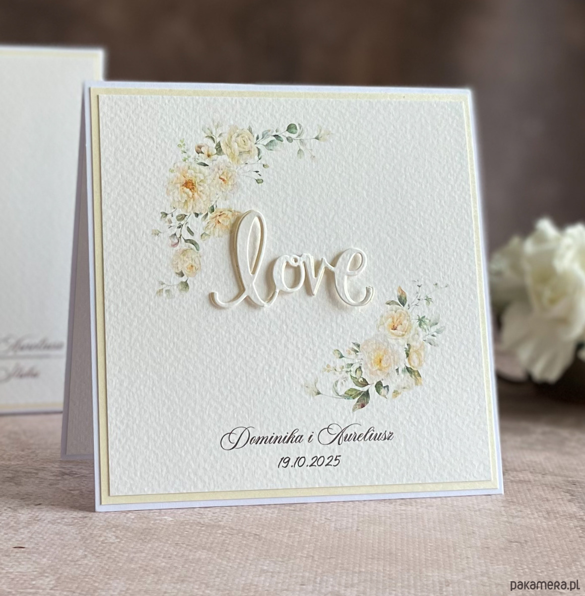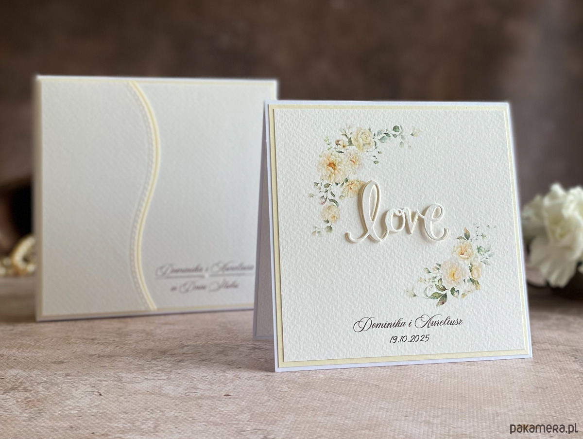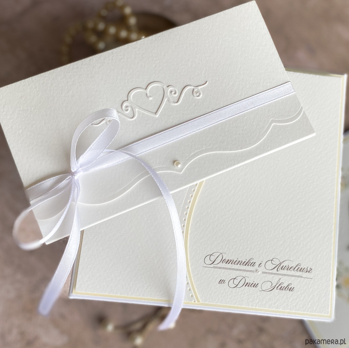 To zestawienie wyjątkowego, włoskiego papieru w odcieniu delikatnej, śmietankowej bieli oraz wykończeń w odcieniu ecru. Ozdobionych ręcznie wyciętymi elementami z dodatkiem alabastrowych perełek lub delikatnych cyrkonii.