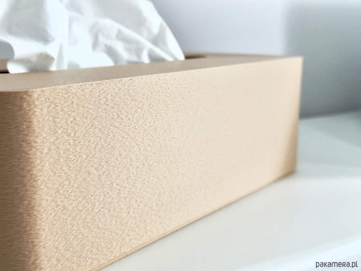 Pudełko ozdobne na chusteczki wykonane w całości w technologii druku 3D. Nie jest to tylko osłonka na oryginalne pudełko z chusteczkami. Podstawa oraz osłona, całość pozwala ukryć zawartość, ale także ułatwia przenoszenie bez ryzyka wysunięcia się zawartości.