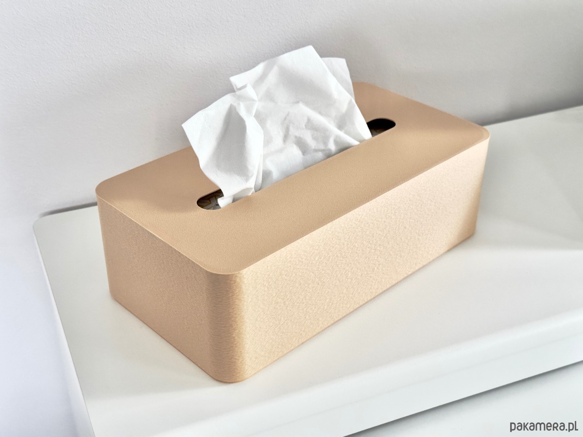 Pudełko ozdobne na chusteczki wykonane w całości w technologii druku 3D. Nie jest to tylko osłonka na oryginalne pudełko z chusteczkami. Podstawa oraz osłona, całość pozwala ukryć zawartość, ale także ułatwia przenoszenie bez ryzyka wysunięcia się zawartości.