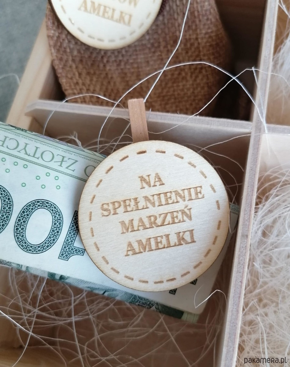 UWAGA: wyposażenie pudełka nie zawiera : smoczka oraz pieniędzy- są to rekwizyty wykorzystane na potrzeby sesji zdjęciowej .