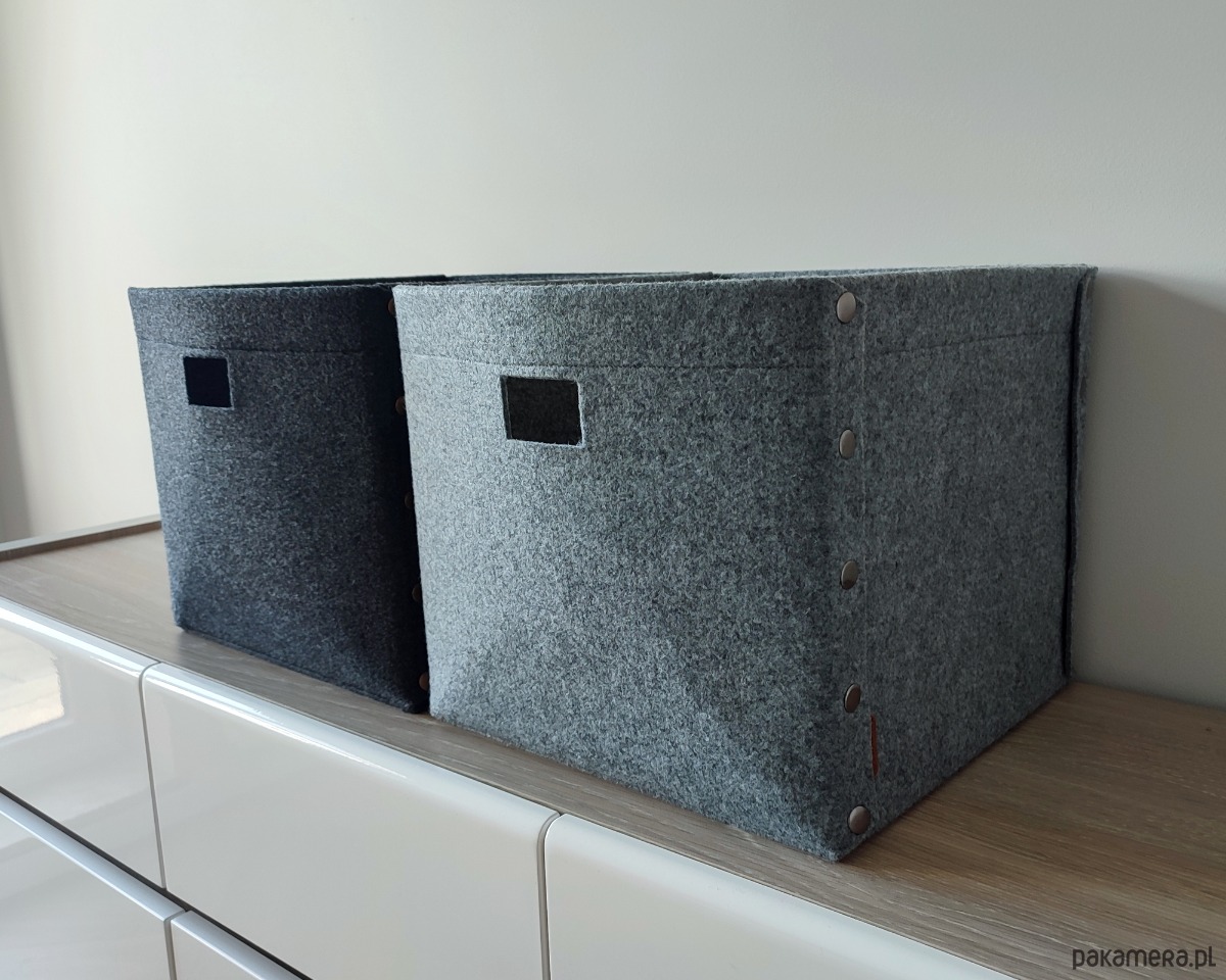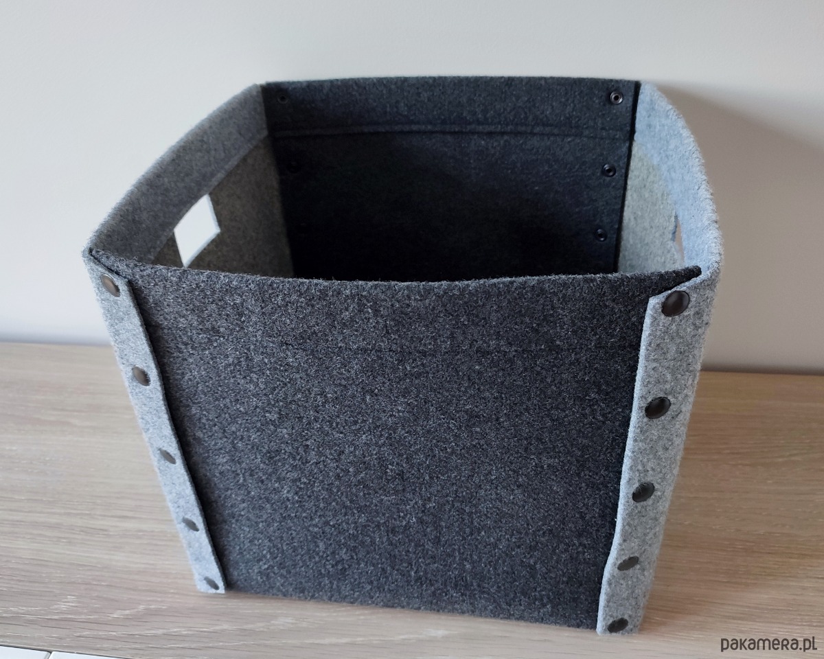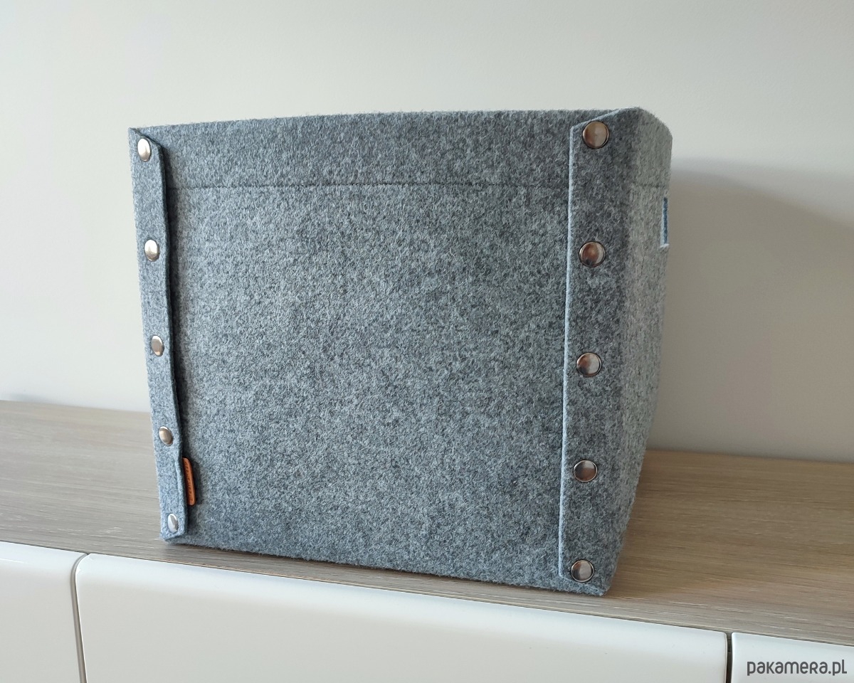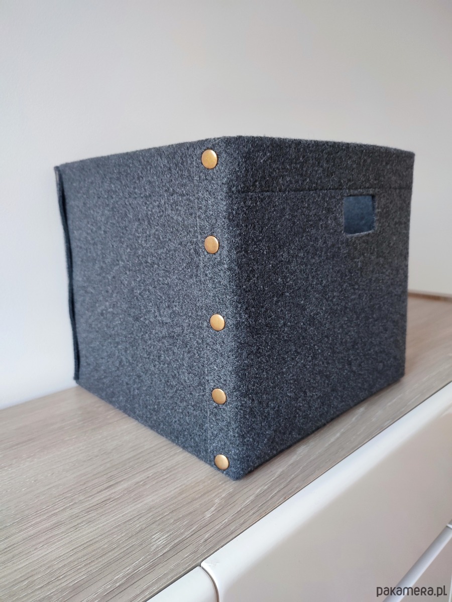 Pudełko zostało wykonane z grubego, mocnego filcu.