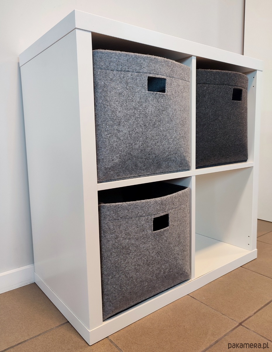 Rozmiar pudełka idealnie pasuje do regału Ikea, typu Expedit, Kallax.