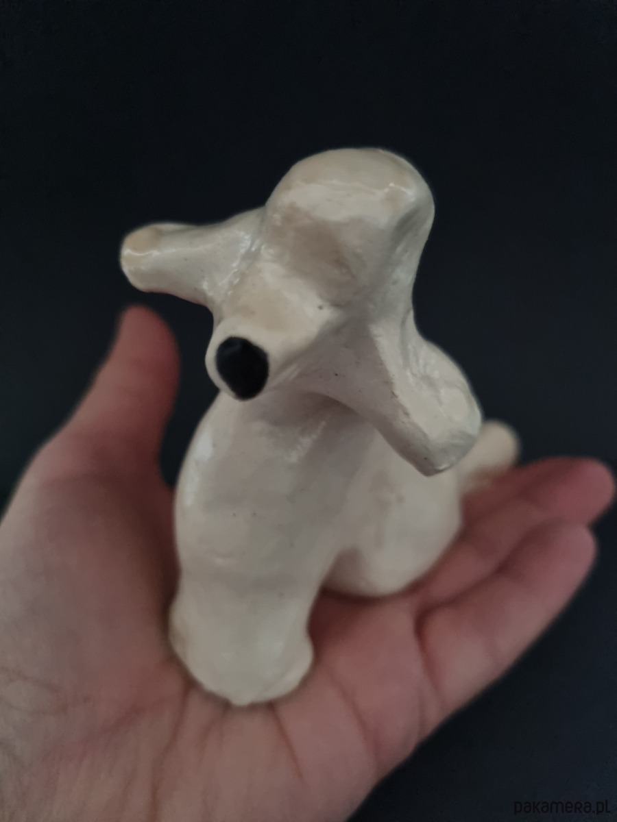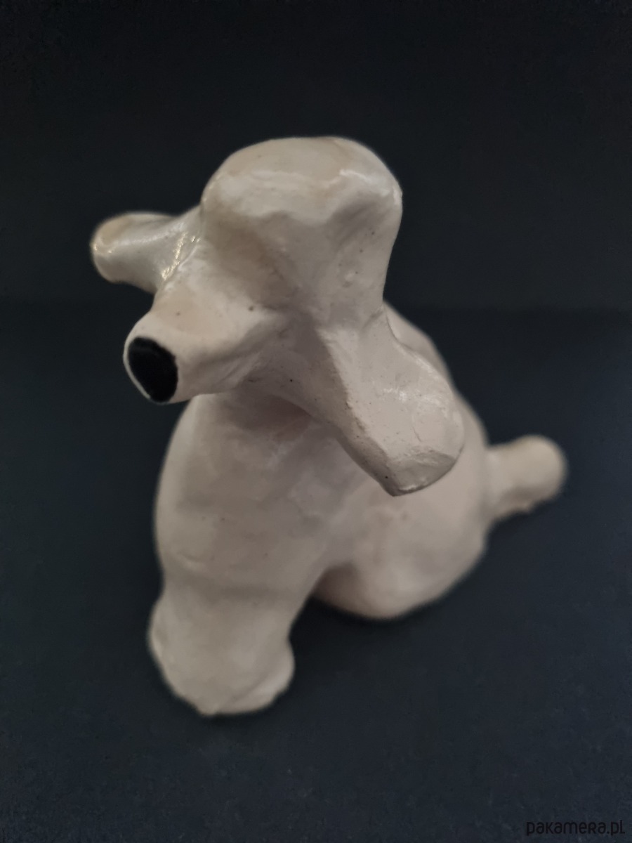 Pudelux rasy Kundelex to figurka z gliny , szkliwiona, jedyny, niepowtarzalny egzemparz.
