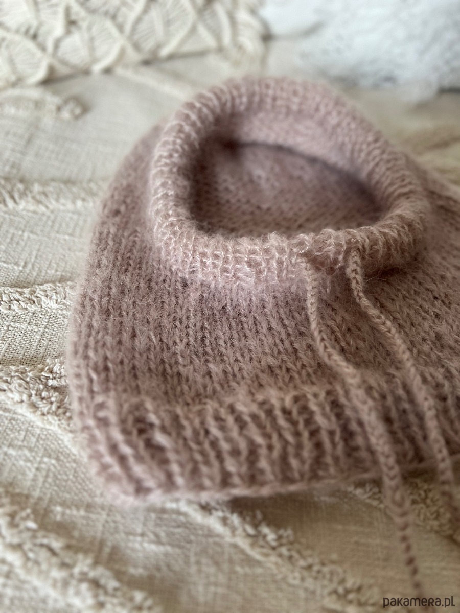 Balaclava, kapturek, kominiarka. Wykonana z dwóch nitek włóczki o składzie 25% Moher, 24%Wełna, 51% Akryl. Grubsza, ciepla, model luźniejszy - nie zrujnuje Twojej fryzury i makijażu 🫶🏼 włóczka bardzo elegancka- z długim włosem i delikatnym połyskiem