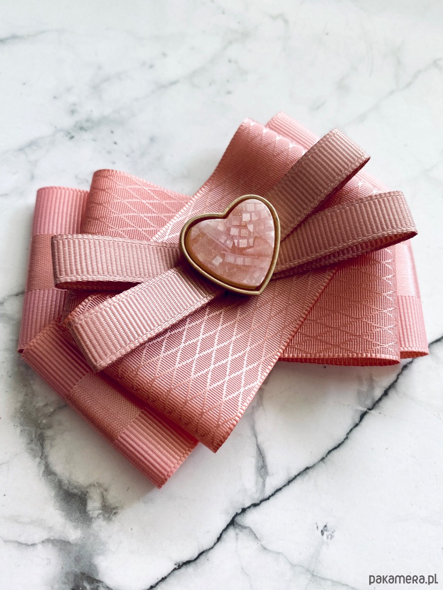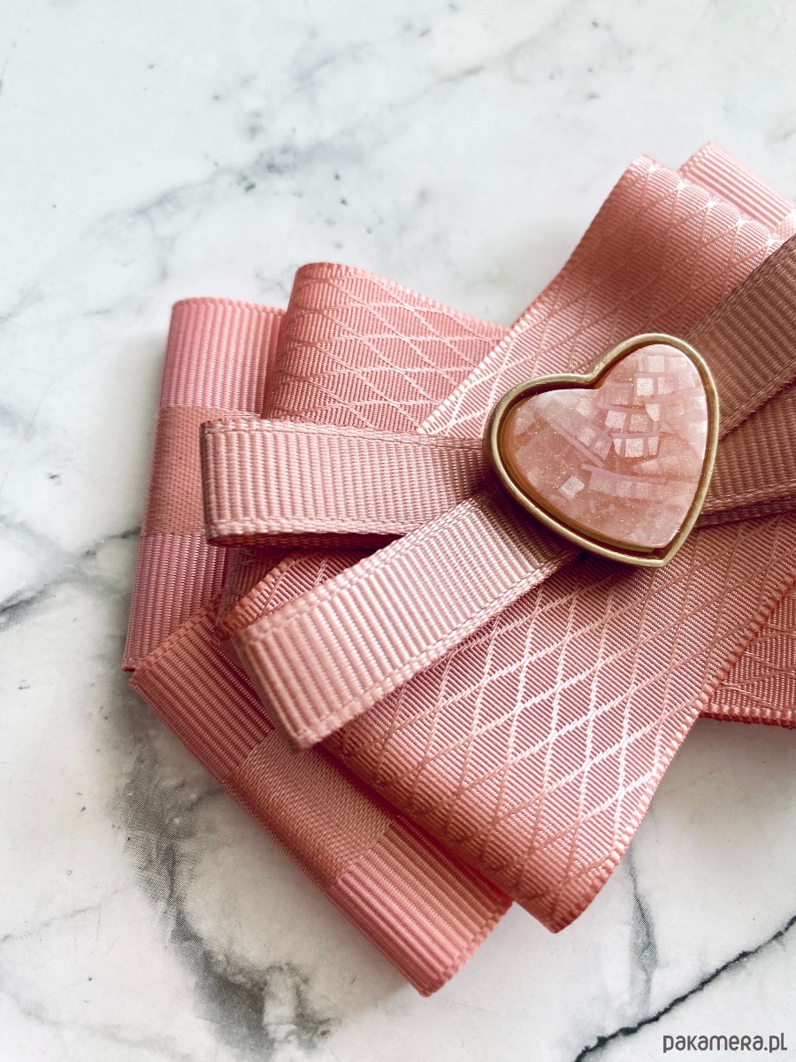 Pudrowa Brosza z sercem z masy kamiennej NEW