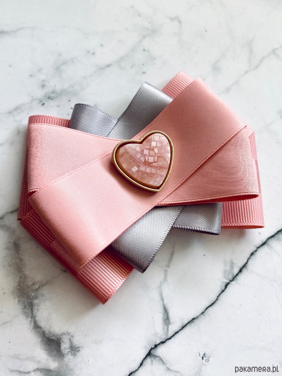 Pudrowa Brosza z sercem z masy kamiennej NEW