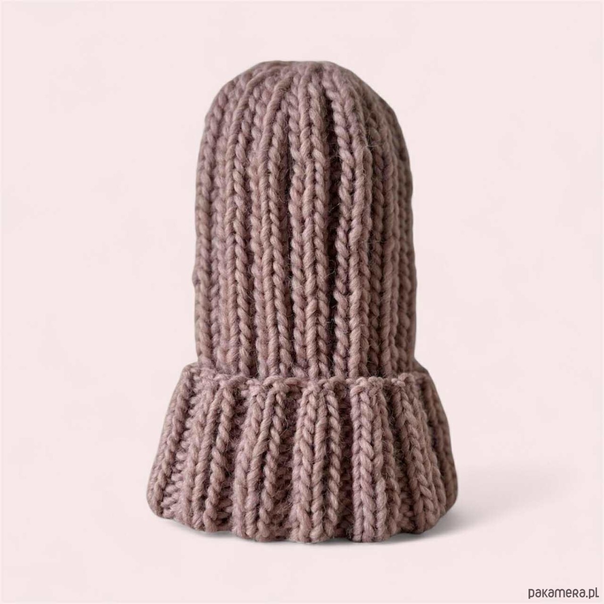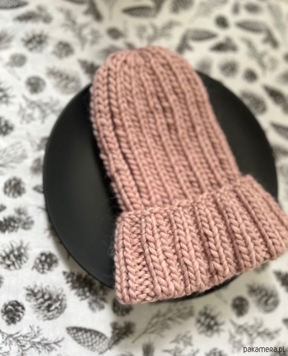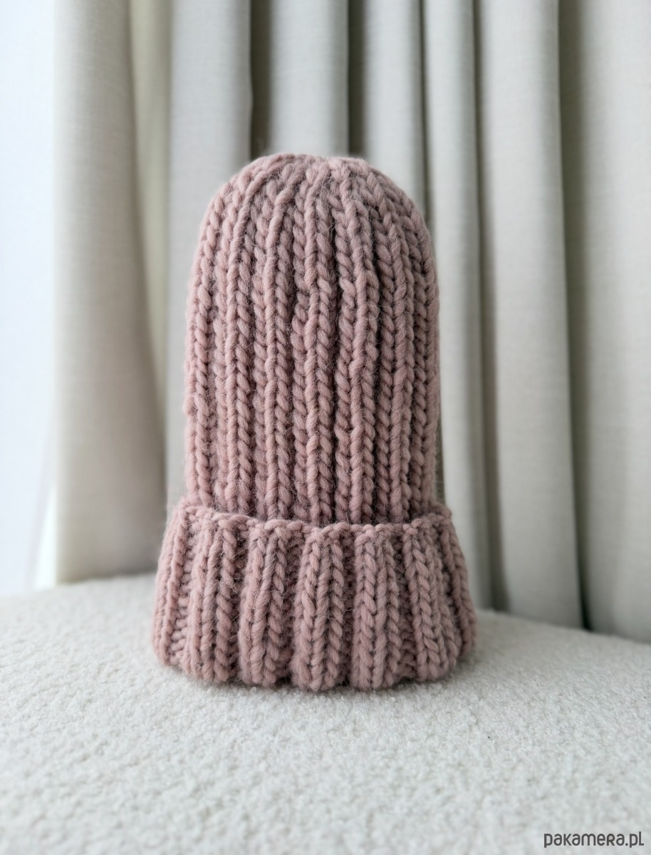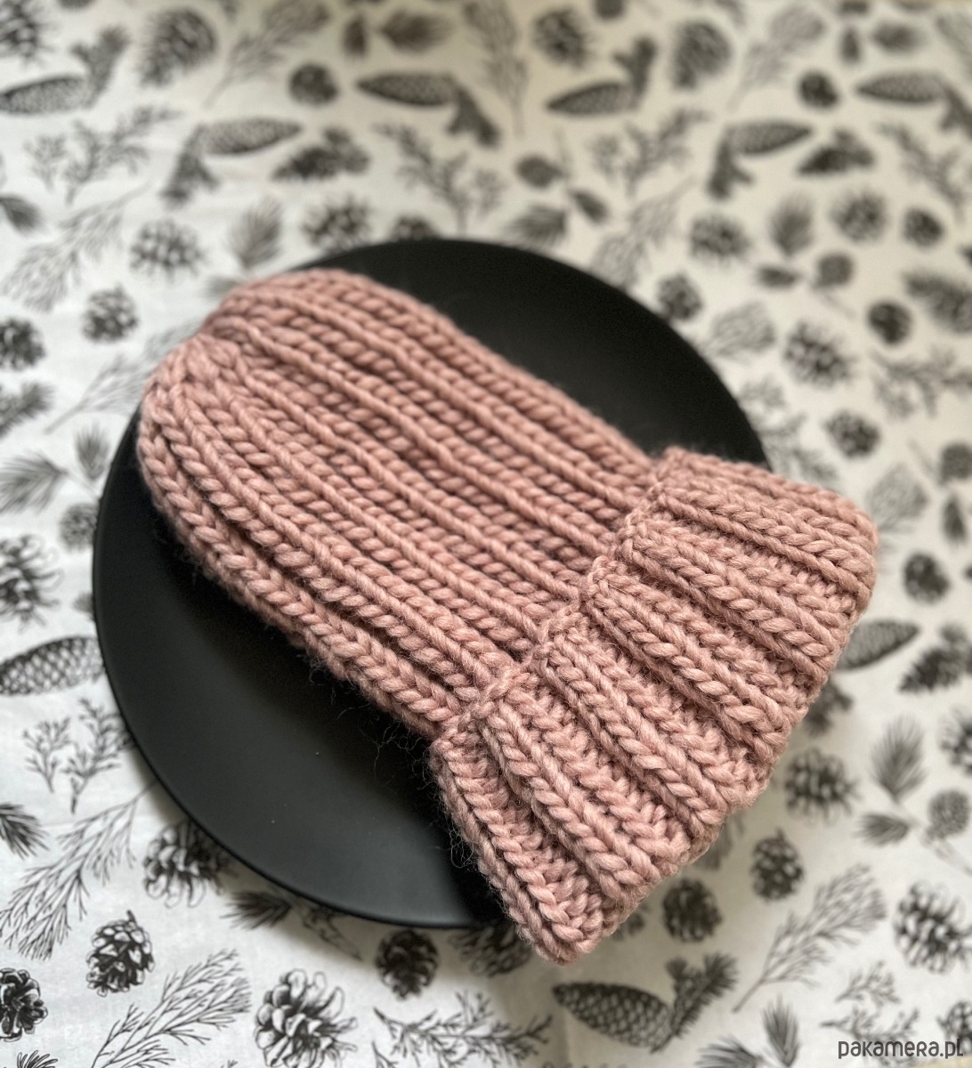 Czapka w kolorze pudrowym, wykonana z naturalnej włóczki 100% wełna