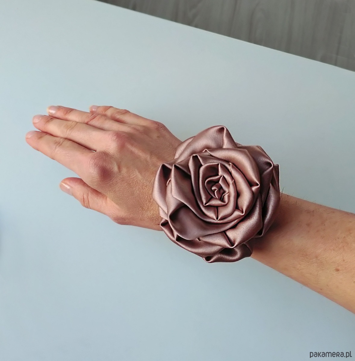 Piękna, frotka do włosów z różą z jedwabiu naturalnego. Zachwycająco wymodelowana, subtelna, lecz niebagatelna ozdoba do włosów, która podbije każdą stylizację. Frotka w pięknym kolorze zgaszonego pudrowego różu ( lub beżo-różu) wkomponuje się w wiele stylizacji codziennych jak i tych na wielkie wyjście.