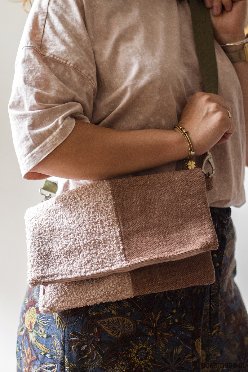Torebka damska typu kopertówka w kolorze pudroworóżowym. Unikatowa, nie ma drugiej takiej samej torebki.