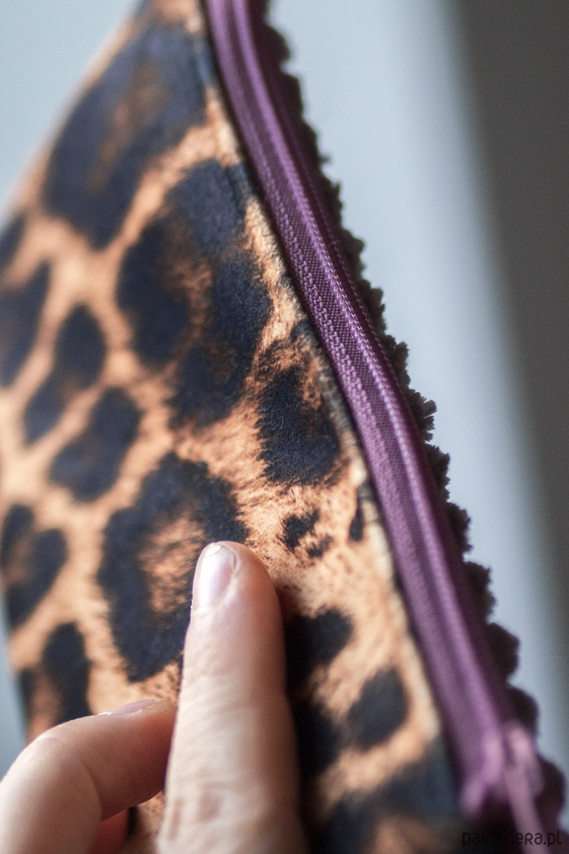 Pudroworóżowy portfelik ze sztruksu + panterka