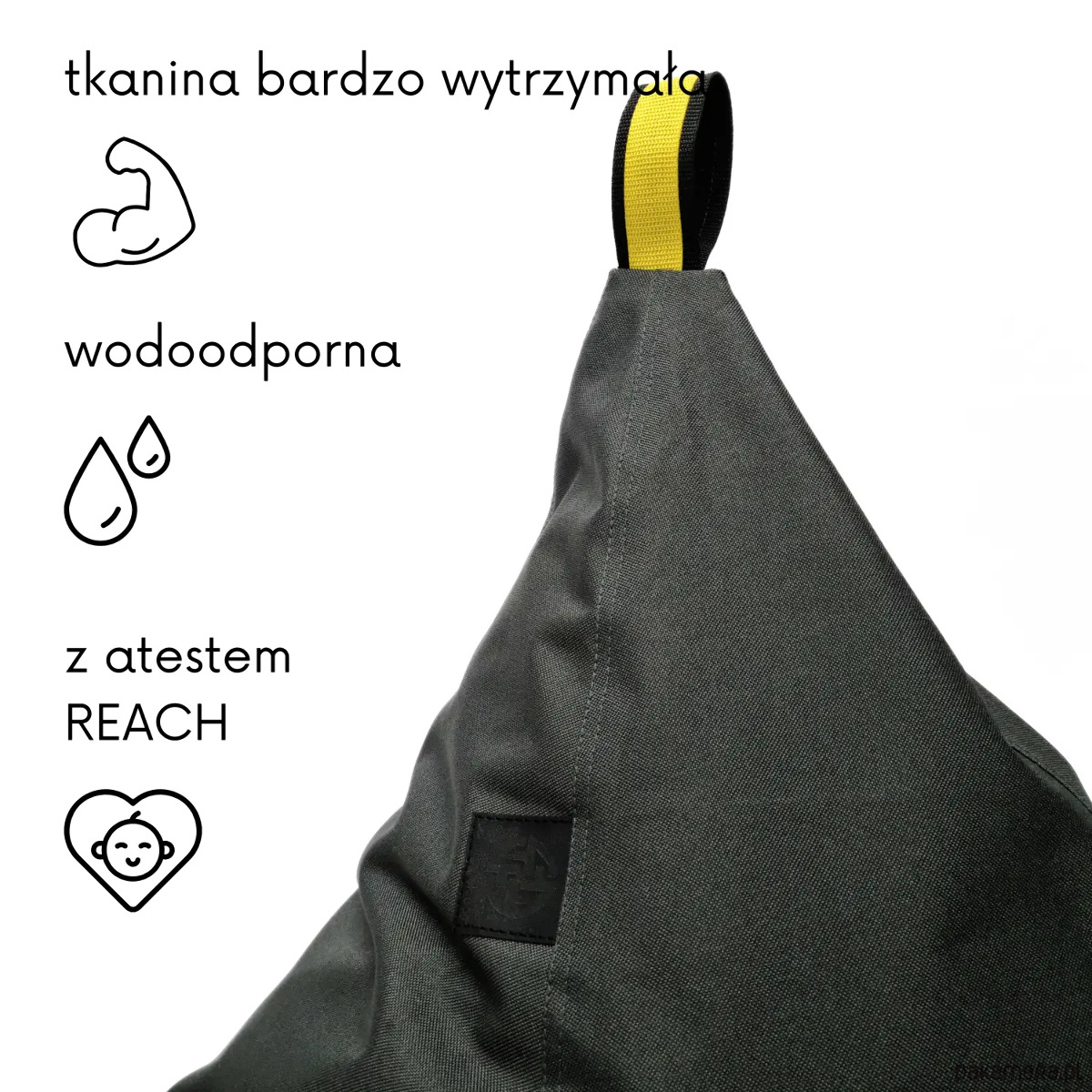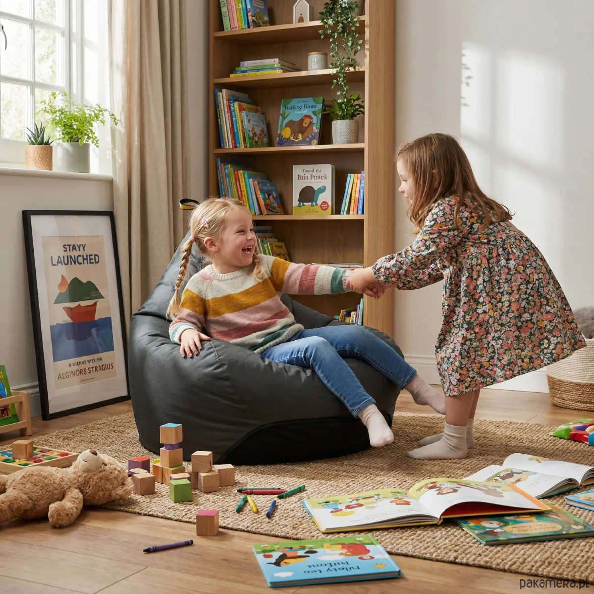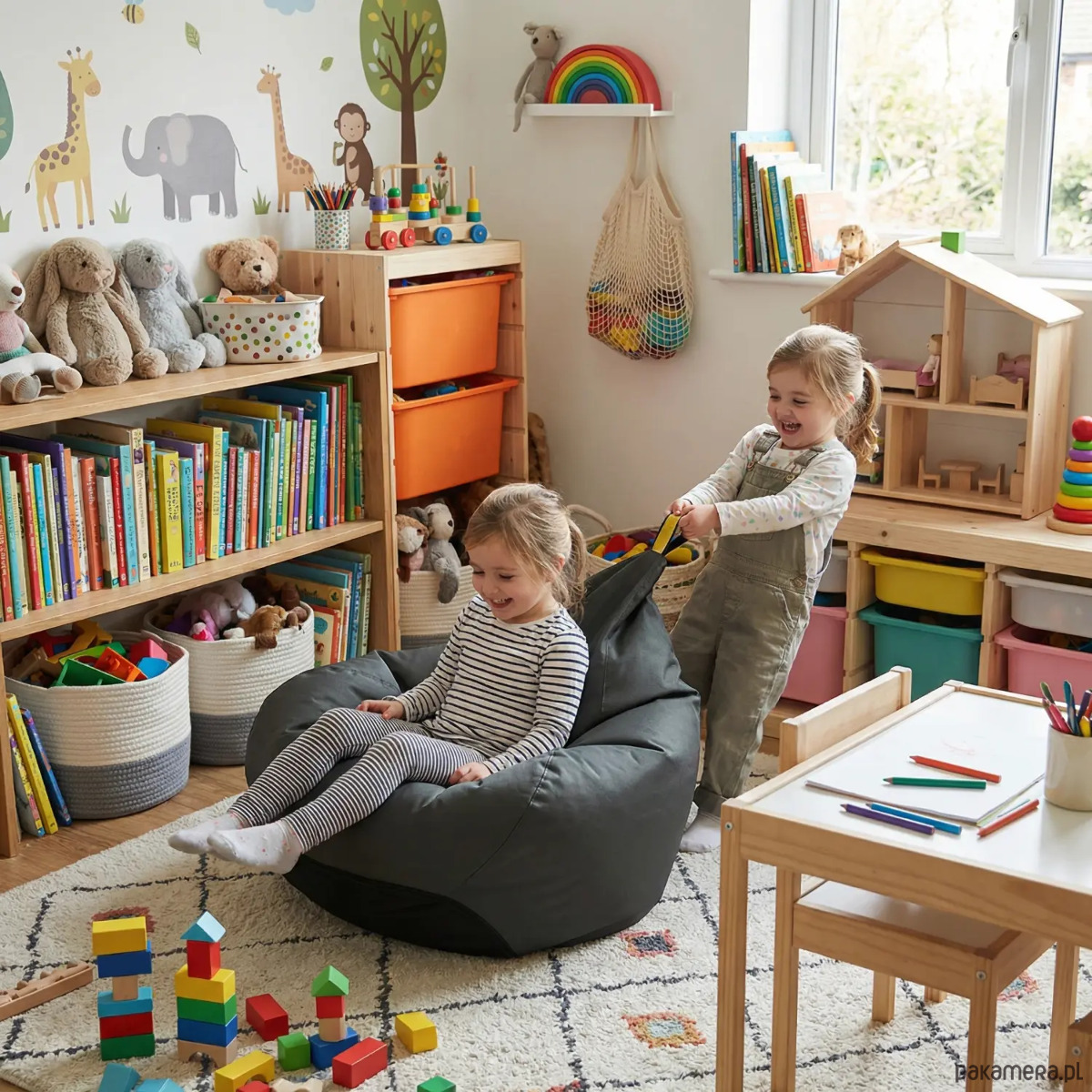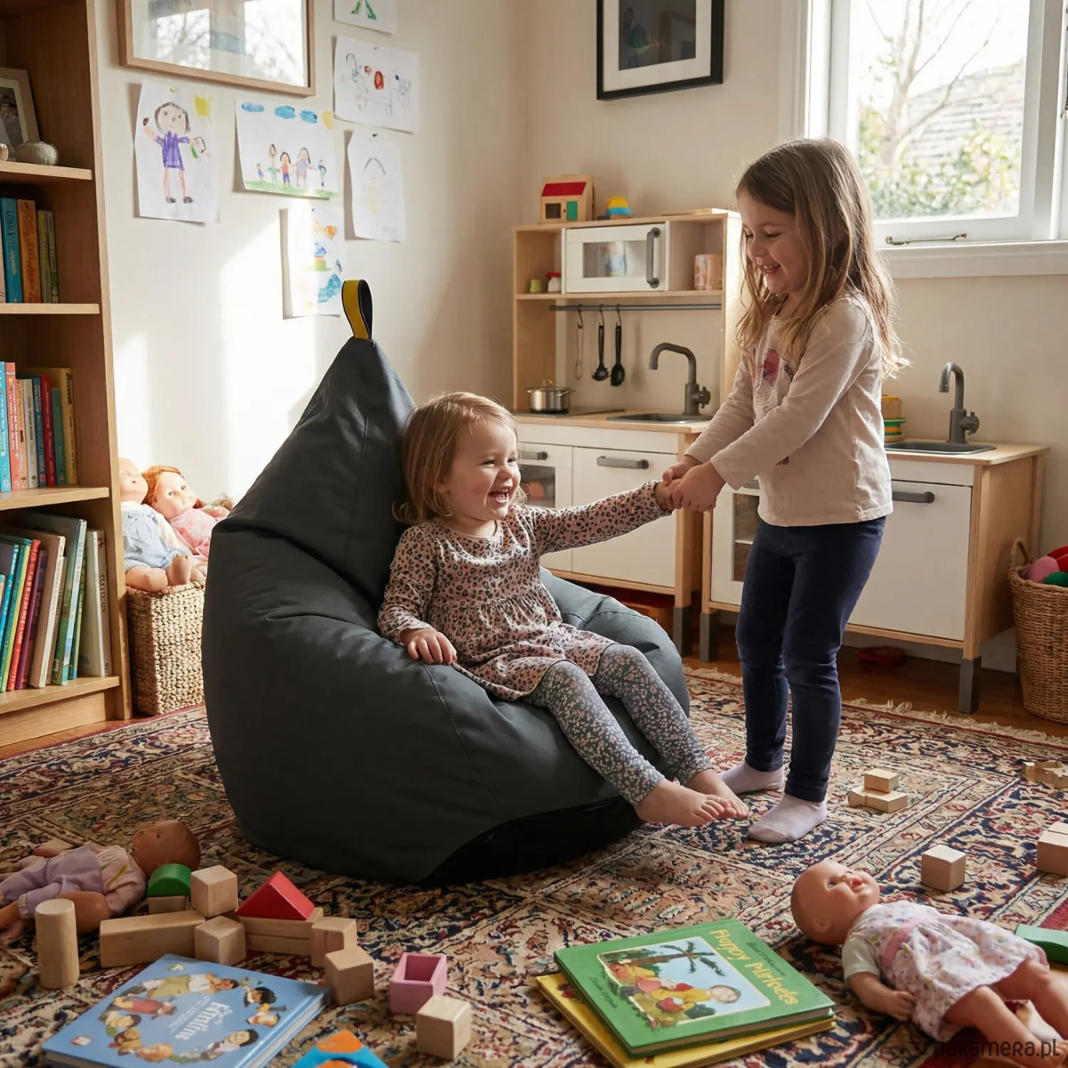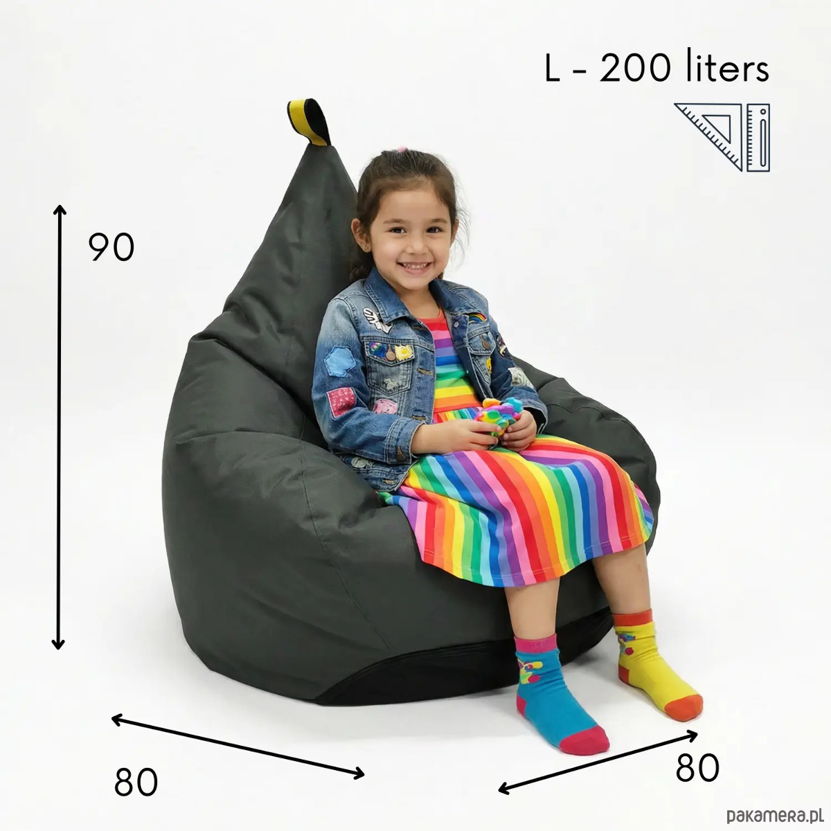 Pufa została wykonana z wytrzymałej, odpornej na codzienne użytkowanie tkaniny, dzięki czemu świetnie sprawdza się zarówno do zabawy, jak i odpoczynku. Dzieci mogą na niej skakać, budować swoje bazy i tworzyć własne światy, nastolatki wykorzystają ją do grania, czytania i spotkań ze znajomymi, a dorośli docenią ją jako wygodne miejsce do relaksu po pracy. To mebel, który rośnie razem z domem i jego mieszkańcami.