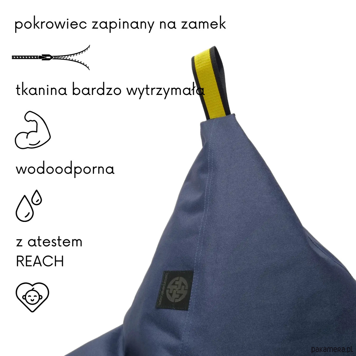 • bez wypełnienia – w zestawie znajduje się pusty worek na granulat z zamkiem, który można samodzielnie napełnić kulkami EPS, miękkimi zabawkami, poduszkami lub odzieżą.