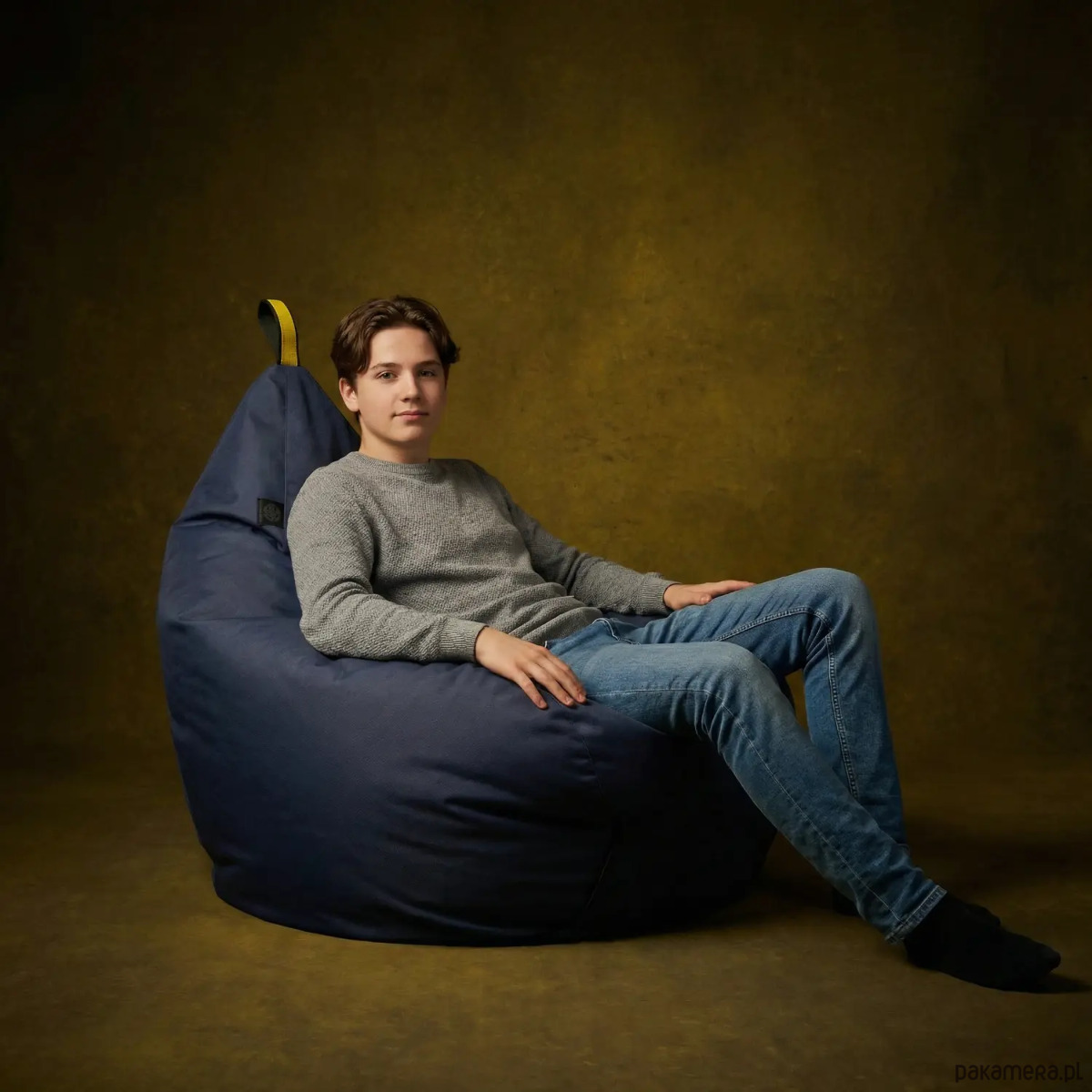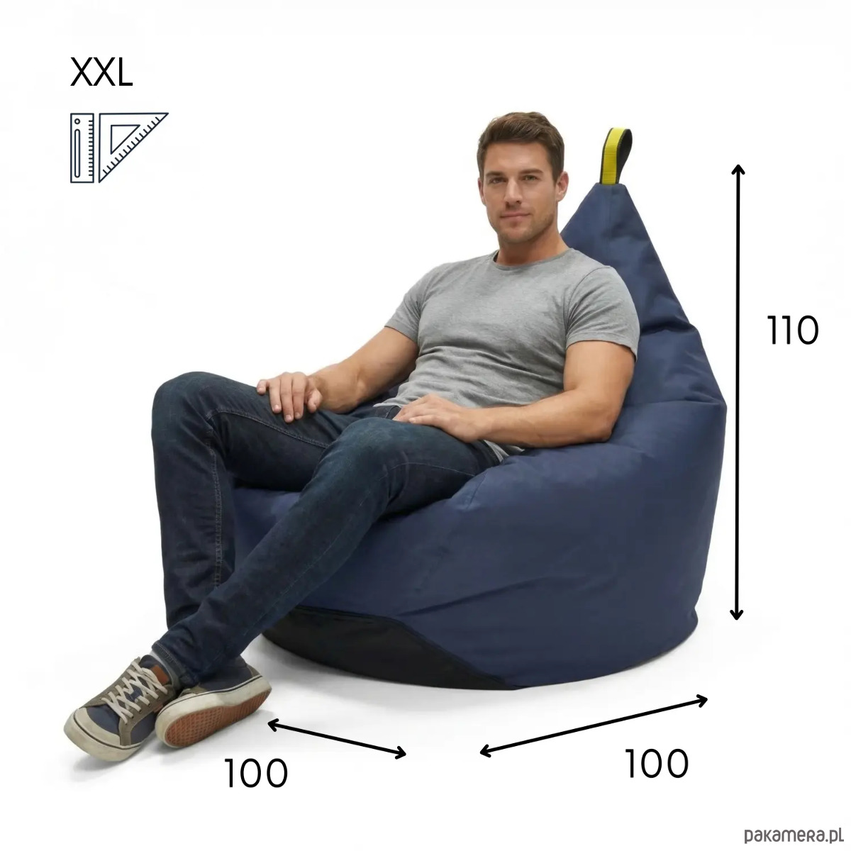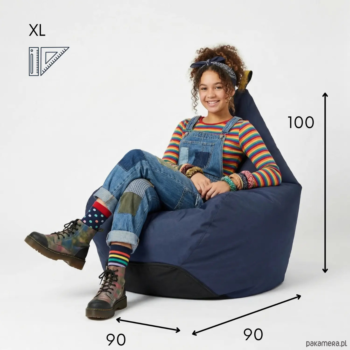 Pufa TIPI w kolorze granatowym to wygodne, nowoczesne siedzisko inspirowane formą fotela, idealne do salonu, pokoju dziecka, młodzieżowego wnętrza, strefy relaksu lub tarasu. Jej charakterystyczny kształt zapewnia stabilne podparcie pleców i komfortowy odpoczynek w każdej pozycji.